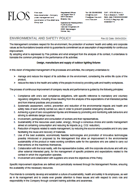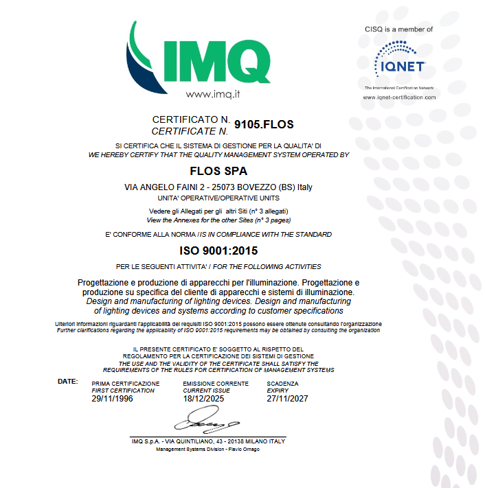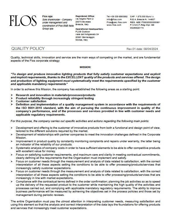 Бренд Flos выпускает предметы освещения объектов частной, офисной, коммерческой недвижимости. Линейка архитектурного света предназначена для вечерней акцентуации фасадов зданий. Коллекция уличных ламп - это новые технологии и дизайнерские формы для освещения садово-парковых ансамблей. Кастомный отдел по работе с клиентами выполняет адаптацию каталожных моделей к требованиям конкретного объекта. Стилистика продукции разнообразна. Среди направлений - минимализм, футуризм, неоклассика, эклектика.