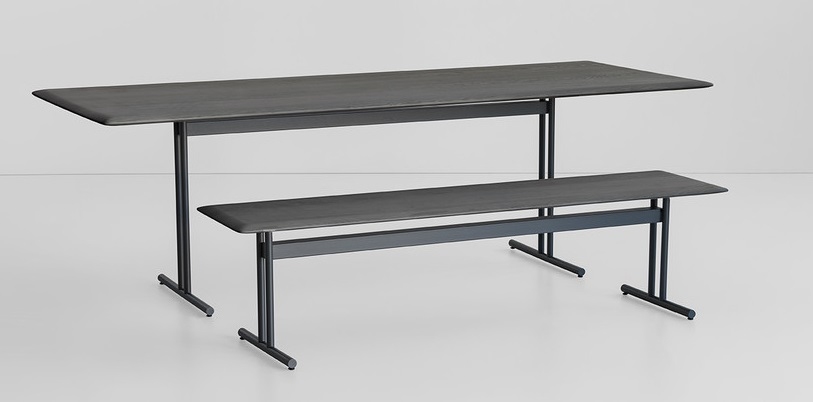 Графическая скамейка Potocco. Графика, разработанная Виктором Васильевым и Марио Феррарини для Potocco, представляет собой скамейку с окрашенным металлическим основанием и сиденьем из массива ясеня с различной отделкой. По желанию можно приобрести тканевую подушку.