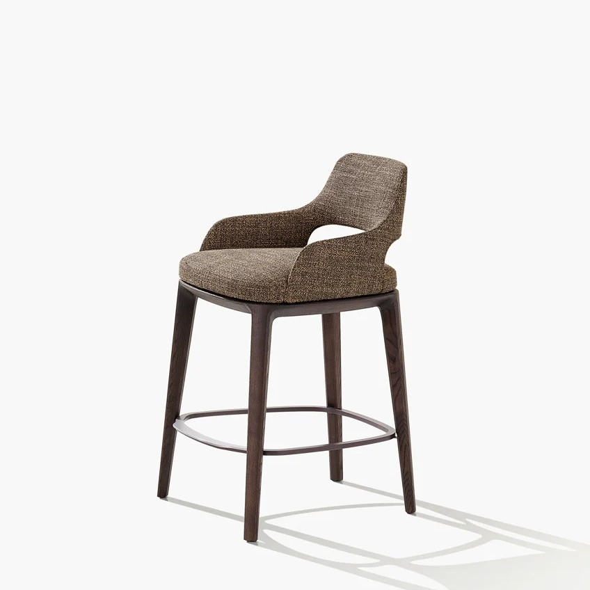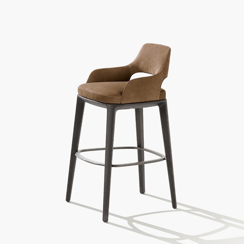 Табурет Sophie Lite PoliformSophie Lite, разработанный Эммануэлем Галлиной для Poliform, представляет собой табурет с подставкой для ног из матового коричневого никеля. Деревянная конструкция из ореха, дуба Шпессар или черного вяза. Кожаная или тканевая обивка. Доступен в двух вариантах высоты.