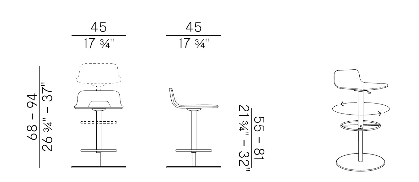 Torso Potocco StoolTorso, разработанный Джанлуиджи Ландони для Potocco, представляет собой выдвижной стул с газовым поршнем, выполненный из металла разных цветов. Сиденье представляет собой профильный монокок, обитый различными видами ткани, кожи или эко-кожи. Торс доступен с круглым или четырехугольным поворотным основанием.