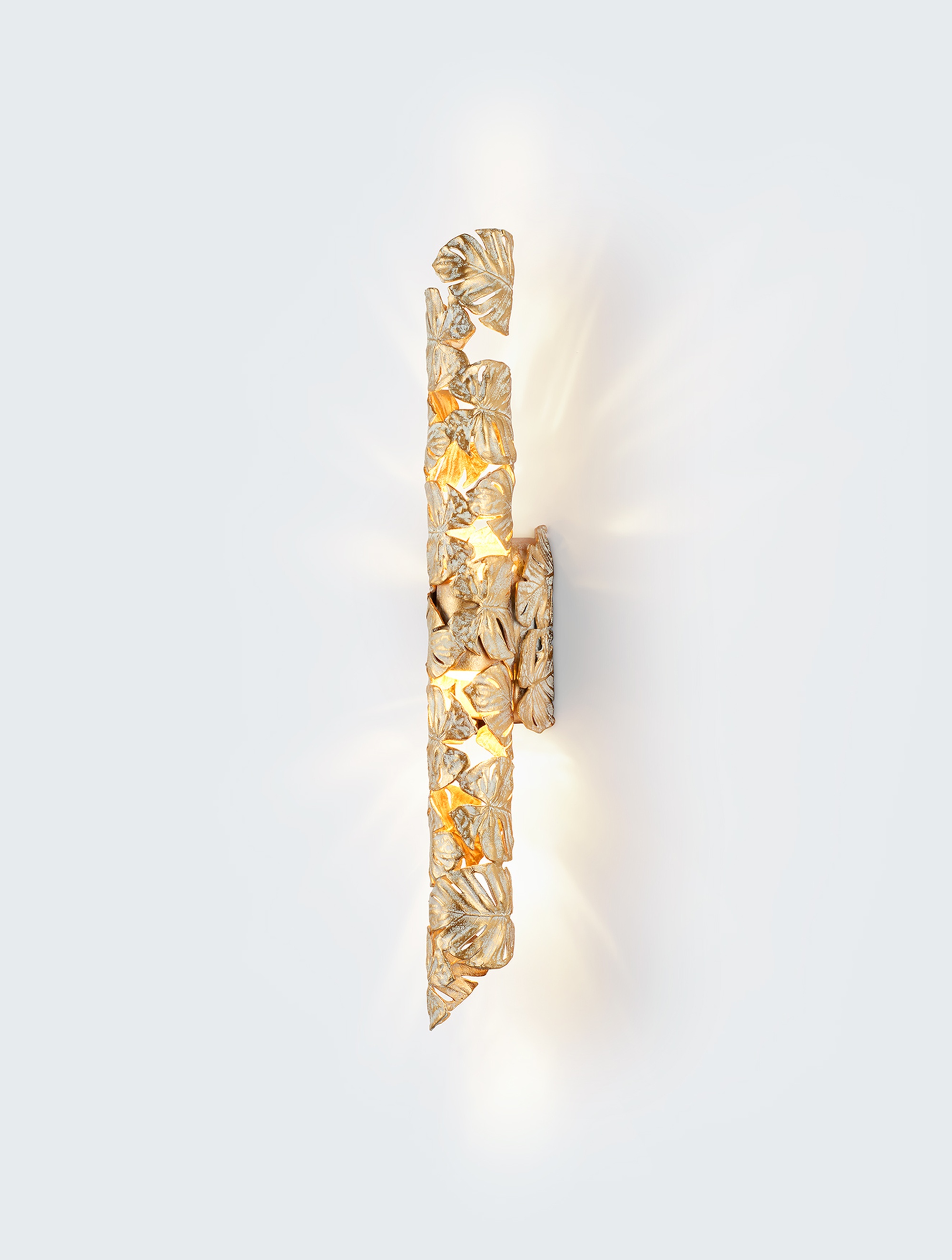 Элегантное настенное бра из бронзы ручной работы из Португалии добавит утончённости спальне, гостиной или прихожей. Уникальный дизайн подчёркивает связь с природой, а мягкое освещение создаёт уютную атмосферу. Каждый экземпляр может незначительно отличаться — это признак авторской ручной работы.