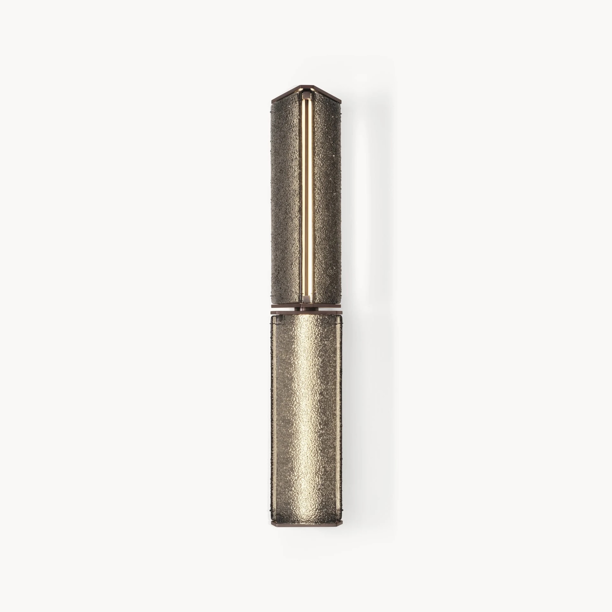 Это бра станет акцентом в гостиной, холле или спальне, объединяя минимализм формы и богатство тактильных эффектов.