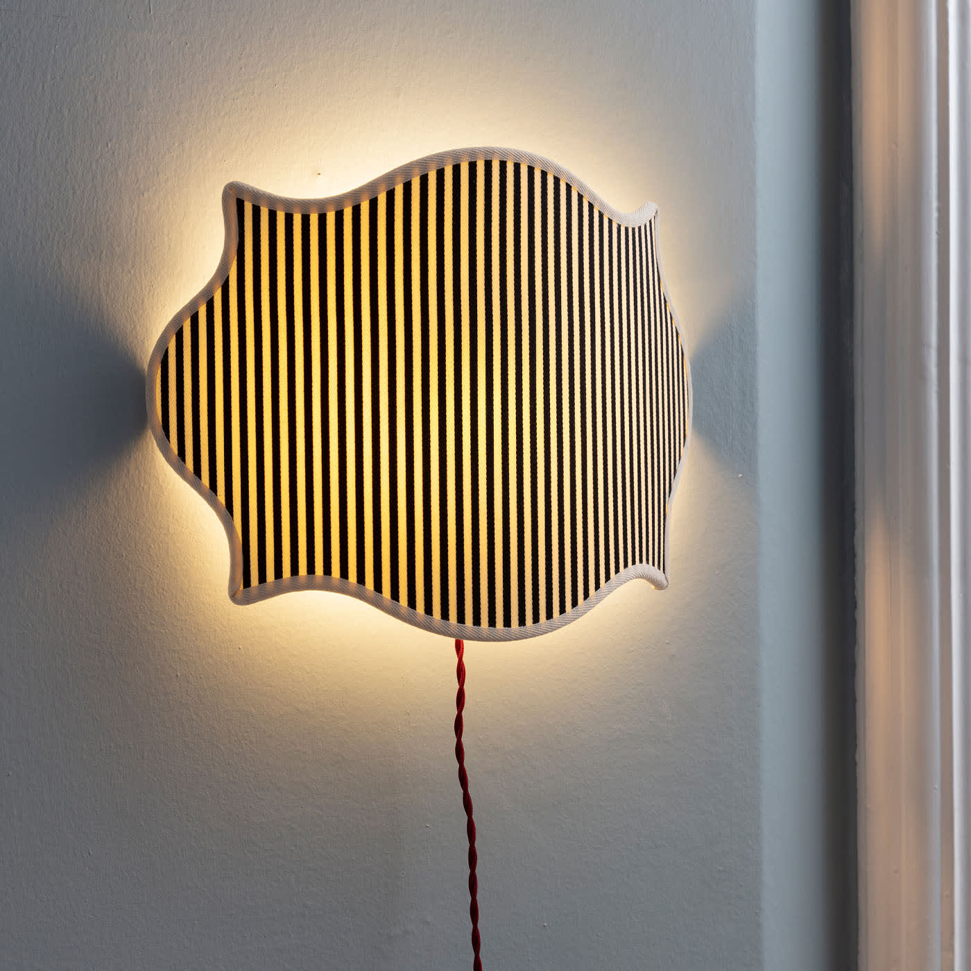 Светильники «Alghero» вдохновлены безмятежными пейзажами сардинской сельской местности. Эта коллекция украшена классическим полосатым узором ткани «Dialogo» от Dedar, который гармонично вписывается как в современный, так и в традиционный интерьер. Каждый светильник оснащен абажуром из хлопковой ткани, элегантным патроном и прочным тканевым кабелем. В комплект входят патроны для лампочек E27 или E26 (лампа в комплект не входит) и двухметровый бордовый шнур в оплетке, имитирующей шёлк. Кабель оснащен выключателем и не имеет функции диммирования.