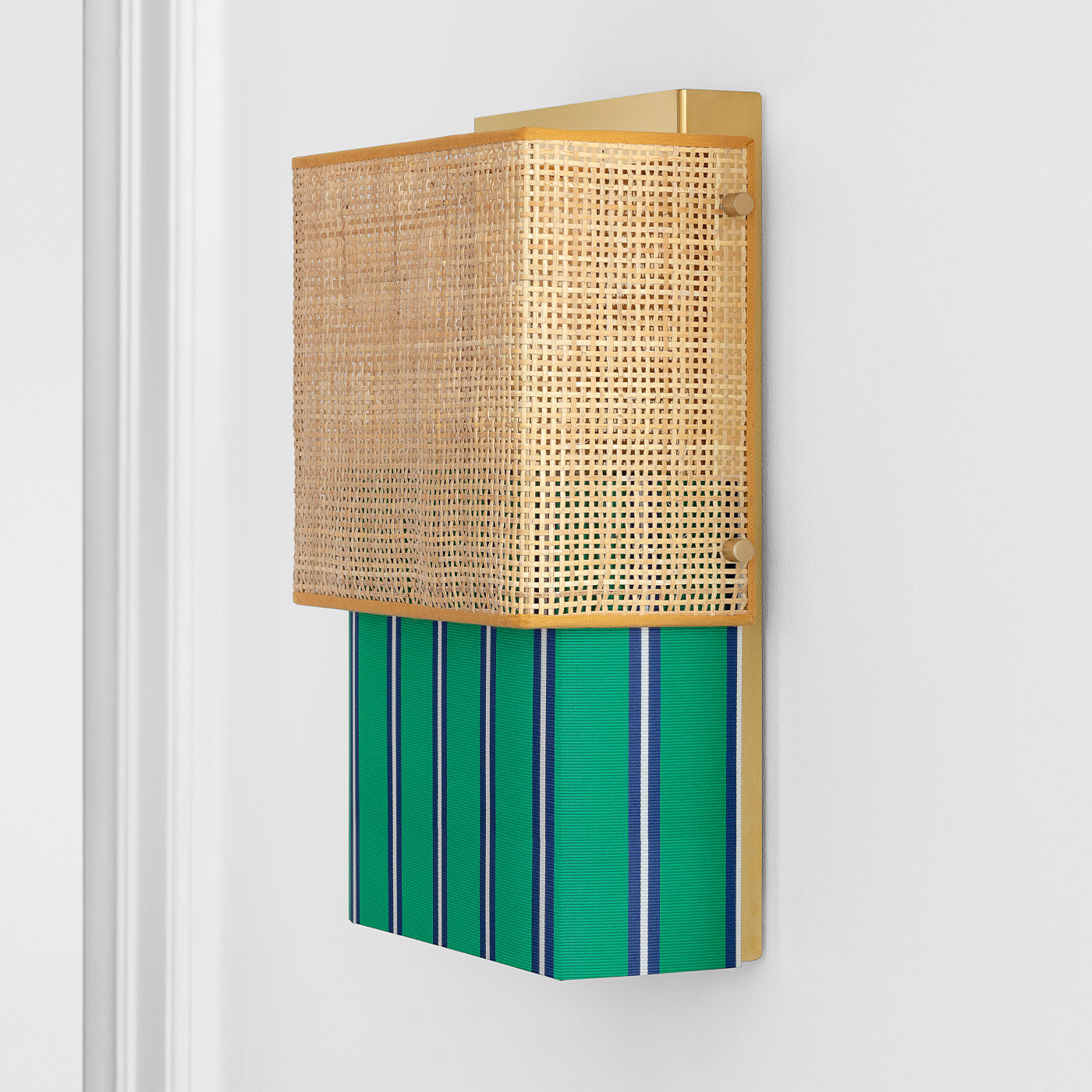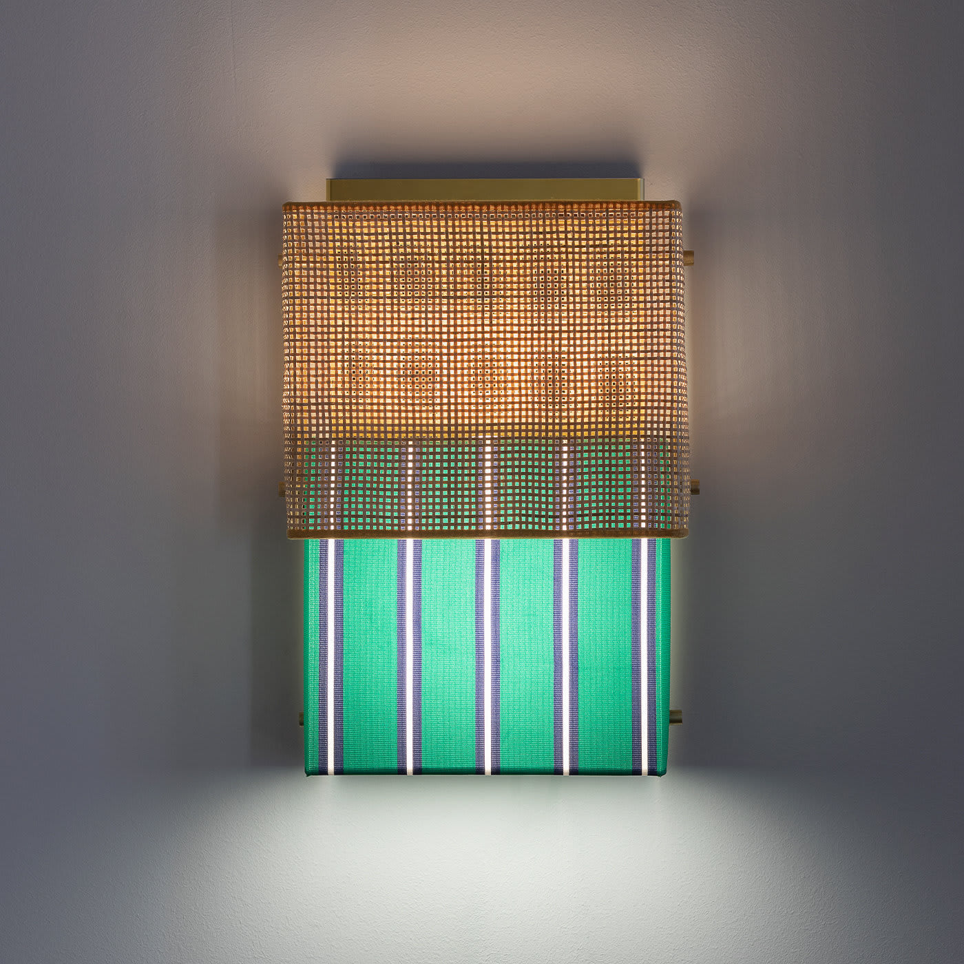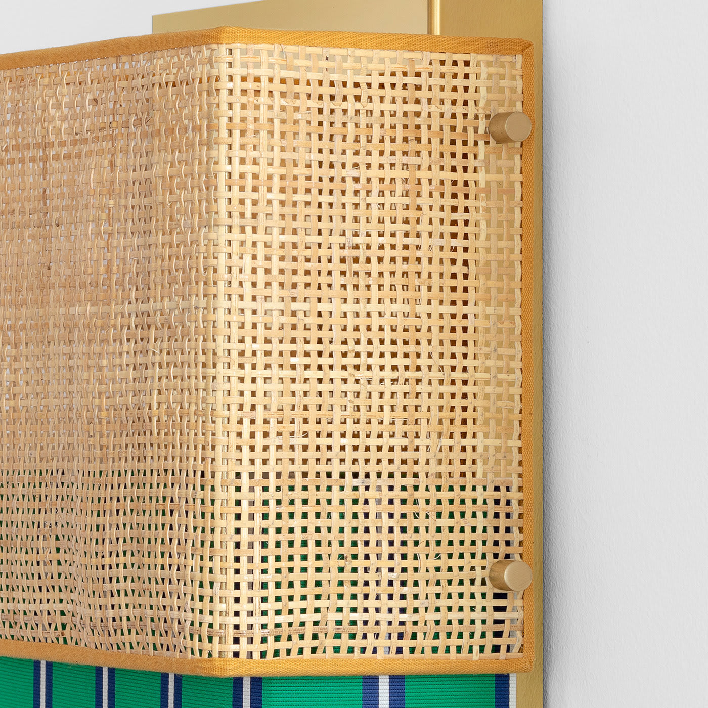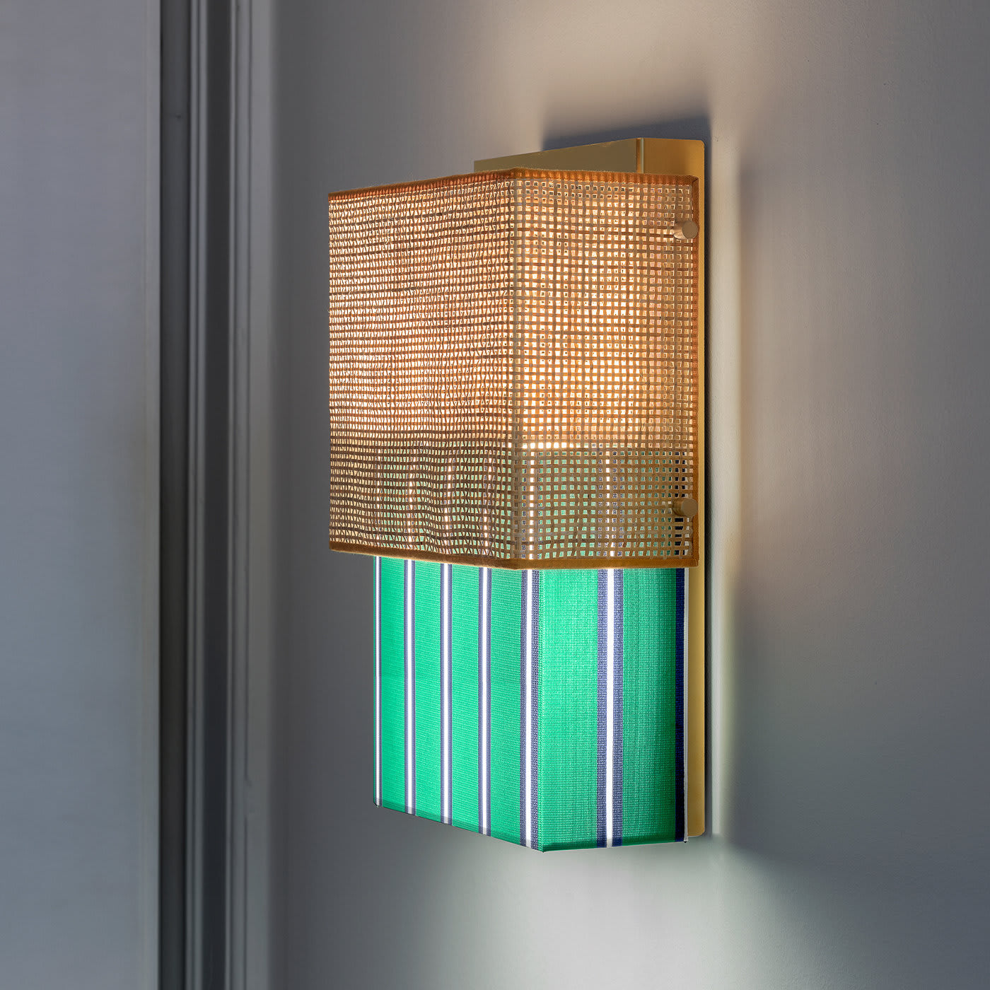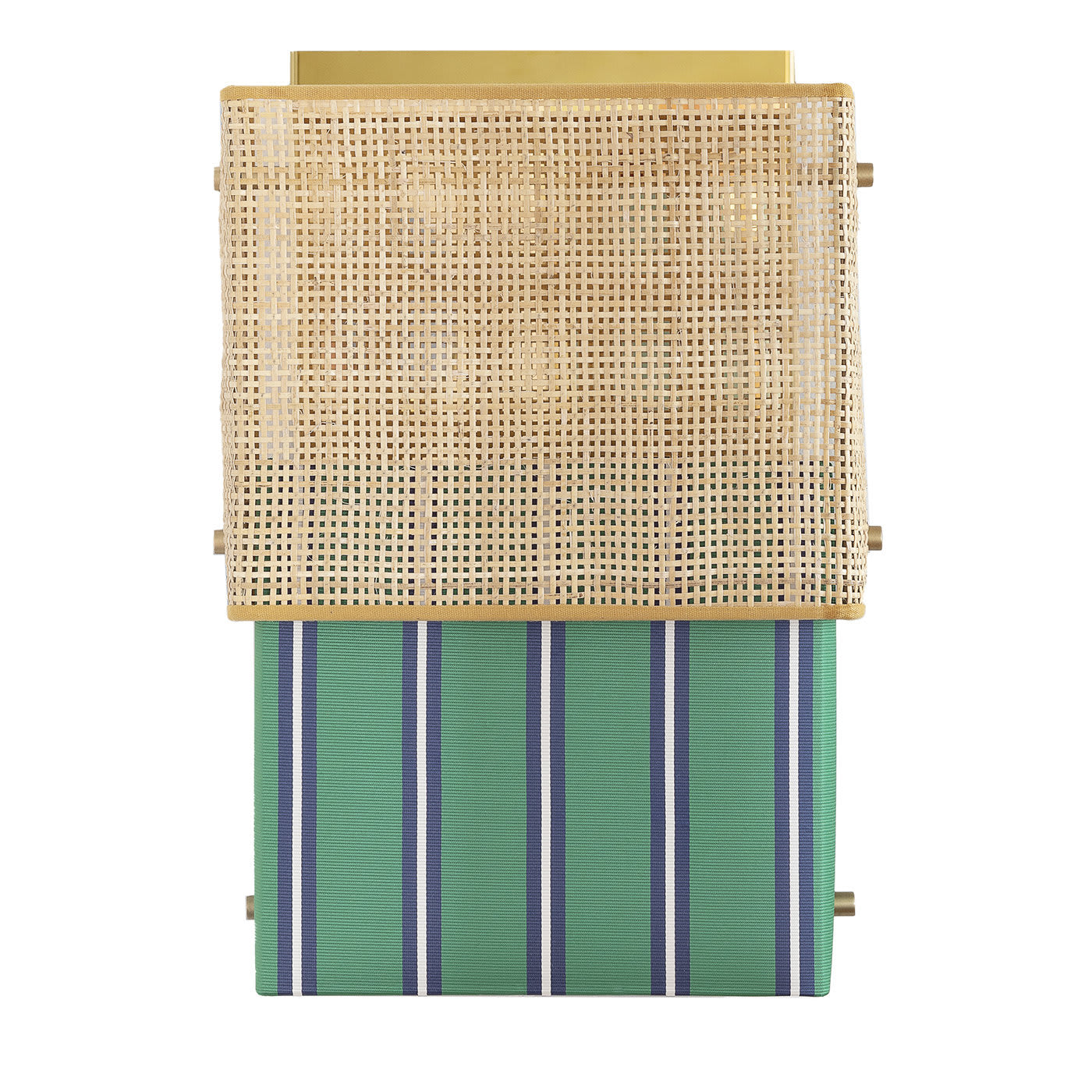 Этот настенный светильник вдохновлён легендарным женским купальником. Как и «Бикини», этот настенный светильник состоит из двух частей: одна из ротанга, а другая — из полосатого тревира итальянского производителя тканей Dedar. Его отражающая позолоченная конструкция из нержавеющей стали имеет блестящую поверхность, рассеивающую свет.