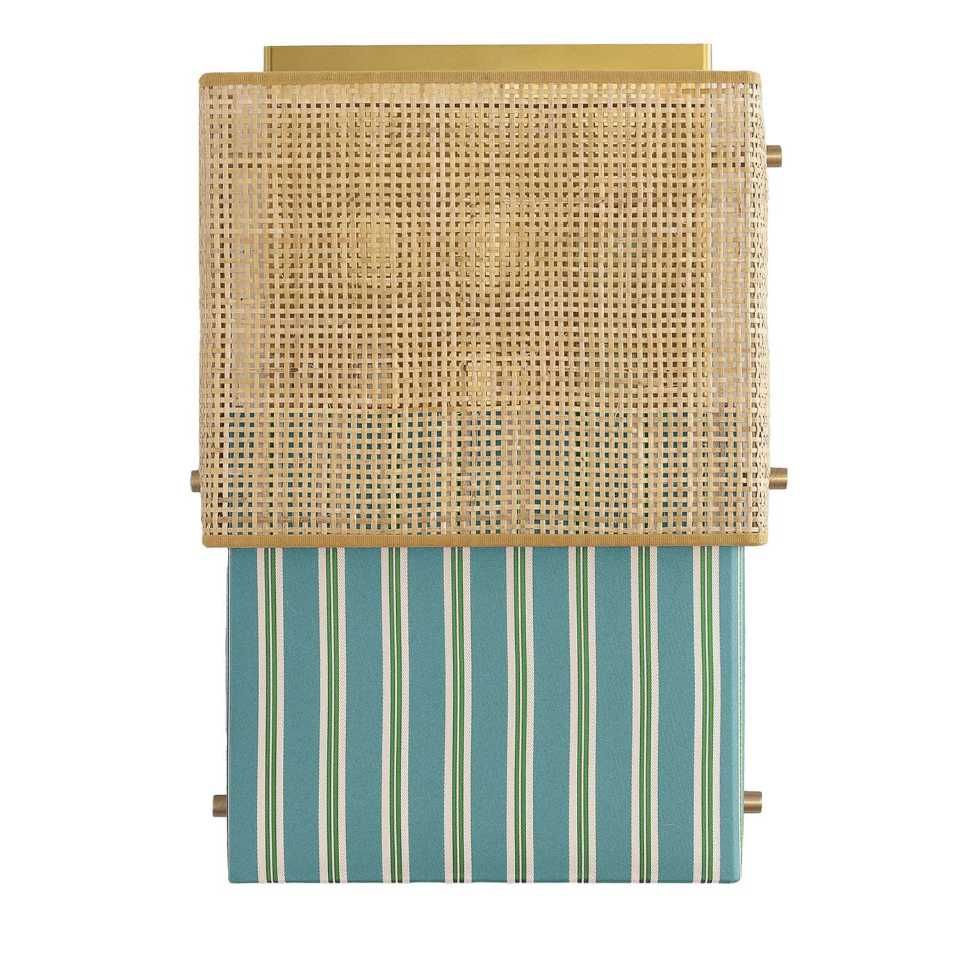 Настенный светильник, вдохновлённый легендарным женским купальником. Как и «Бикини», этот светильник состоит из двух элементов: одного из ротанга и одного из полосатой ткани «Тревира» от Dedar. Светоотражающая золотистая конструкция из нержавеющей стали, к которой крепятся элементы абажура, служит зеркалом и рассеивает свет.