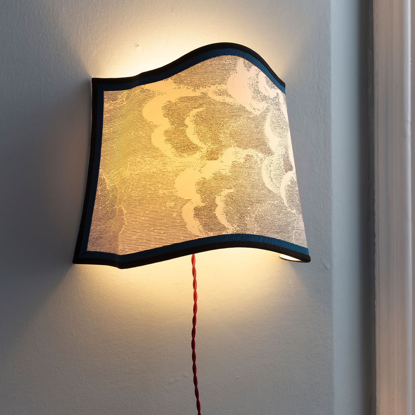 «Cime Tempestose» воплощает элегантность и креативность Servomuto. Светильники отличаются уникальными формами бра и контрастной отделкой, которая дополняет обои Fornasetti «Nuvolette» с пейзажем, напоминающим «Грозовой перевал». Каждый светильник ручной работы уникален. Абажур изготовлен из обоев Fornasetti Nuvolette, в него встроена одна лампочка E27 или E26 (не входит в комплект) и двухметровый шнур бордового цвета в оплетке, имитирующей шёлк. На шнуре есть выключатель, яркость не регулируется.