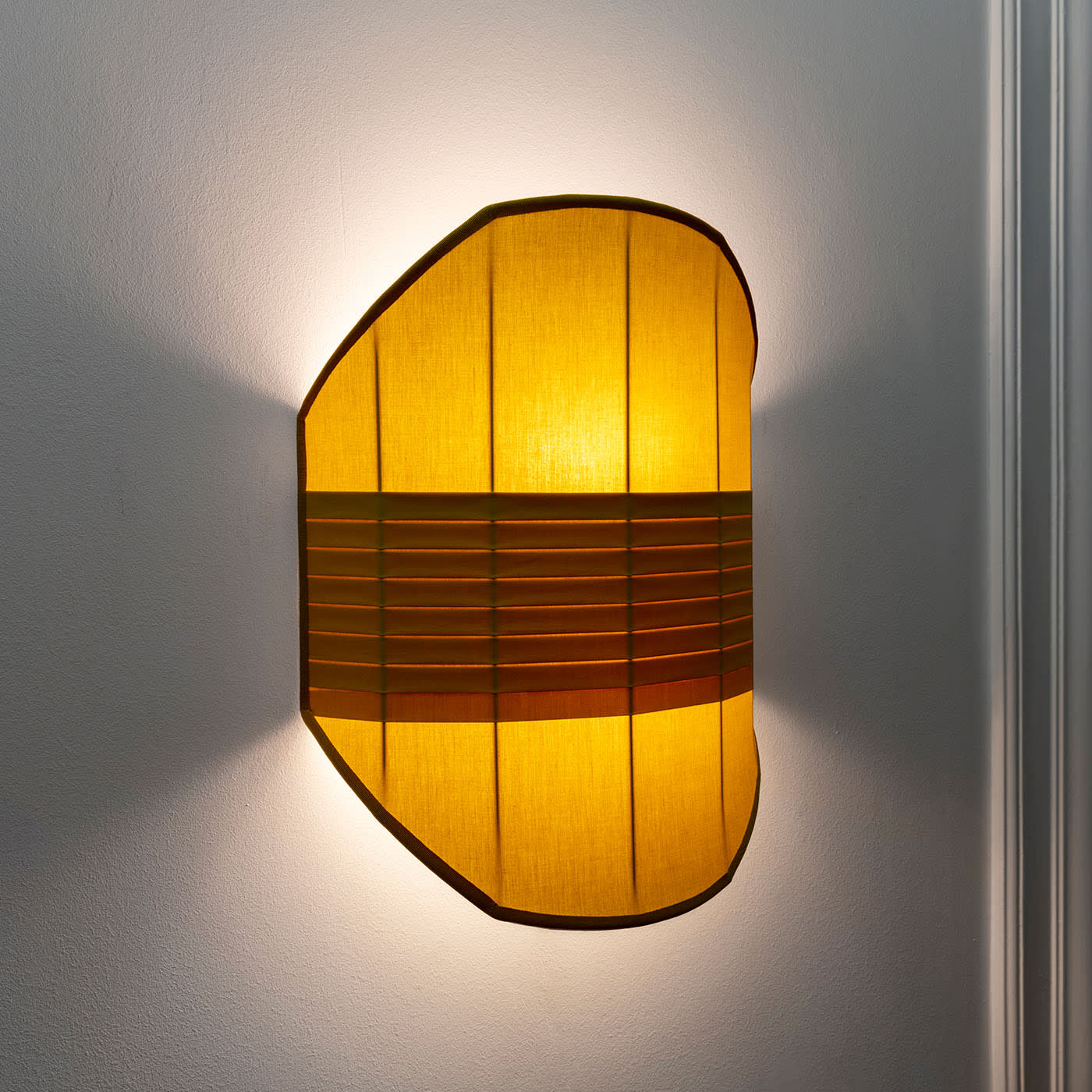 Этот светильник вдохновлён флагом, выбитым в камне, символизирующим отметку на неизведанном пути. Яркие цвета плиссированных хлопковых экранов напоминают сигнальные флаги, а плиссированные детали добавляют изящный графический штрих. Абажур изготовлен из плиссированной хлопковой ткани. В каждом светильнике установлены две лампочки с цоколем E27 или E26 (не входят в комплект). Совместим с системами диммирования.