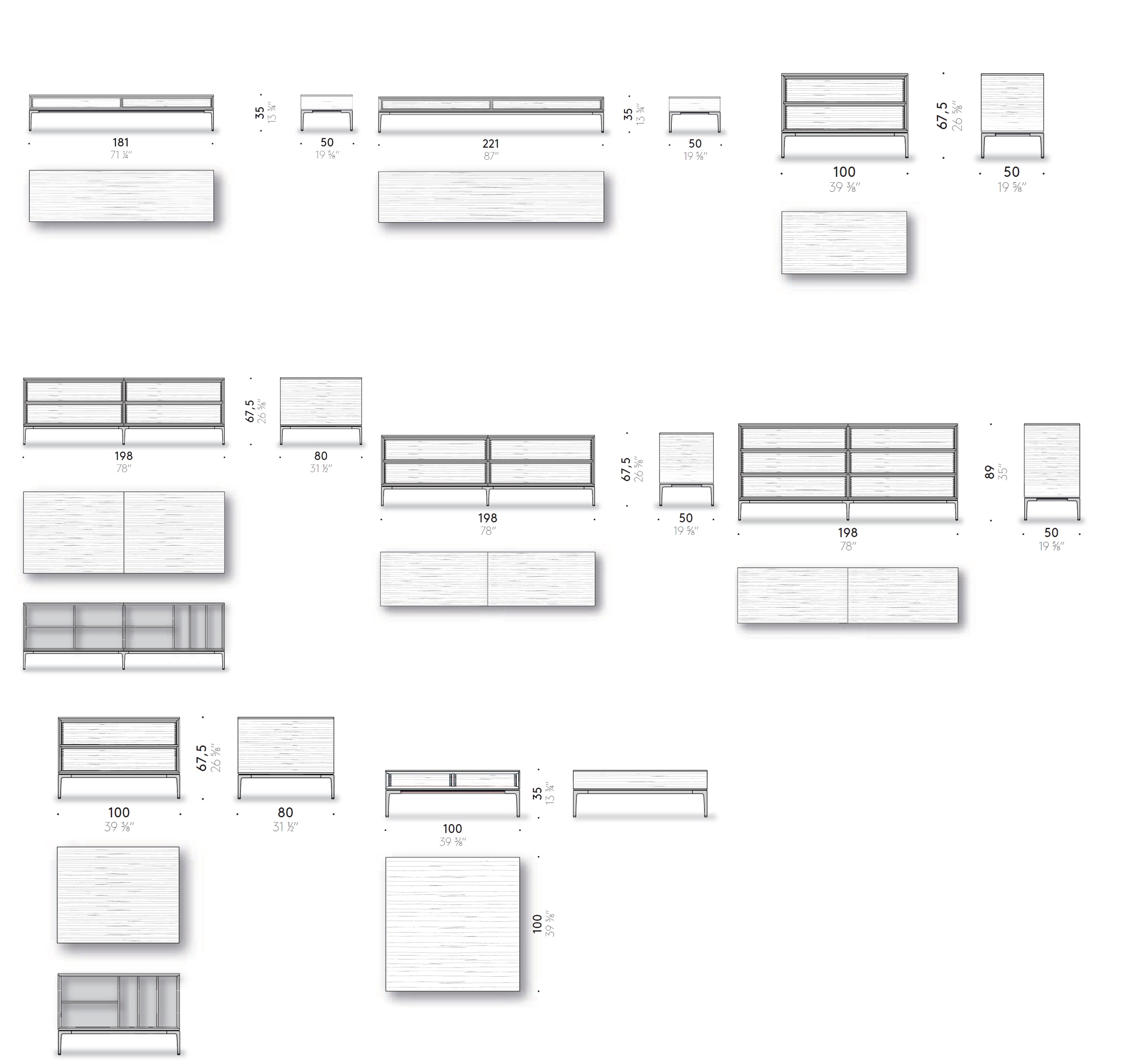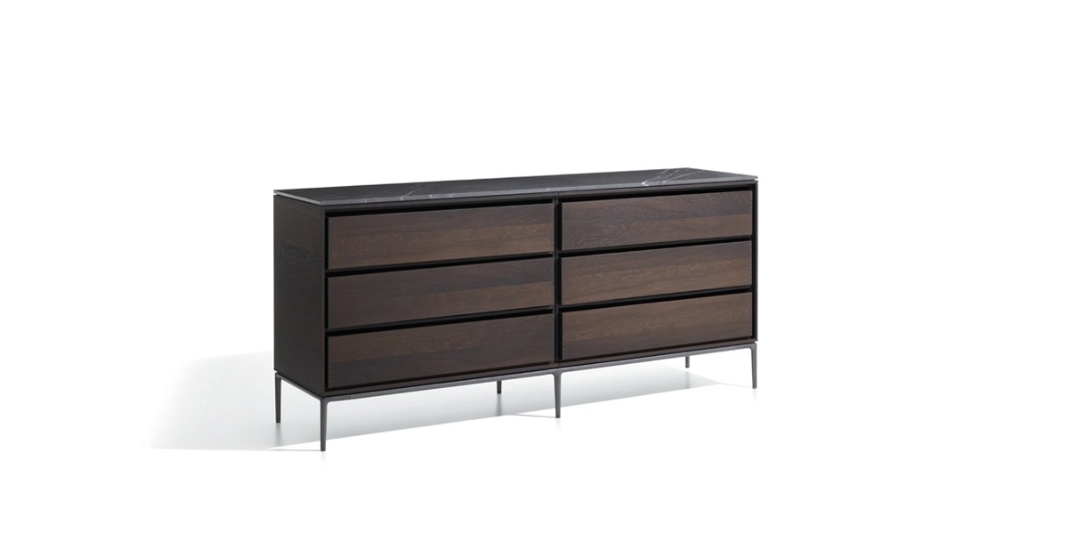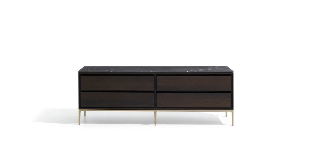 Горизонтальный шкафчик DePadova для хранения вещей. Combi Cabinet Edition, разработанный Пьеро Лиссони для DePadova, представляет собой шкаф для хранения вещей. Ножки и перемычки изготовлены из окрашенного жидкостью алюминия цвета латуни или цвета полированной латуни с регулируемой стелькой. Каркас контейнеров и ящиков выполнен из МДФ, покрытого шпоном копченого дуба, покрытого прозрачным лаком на водной основе или на основе растворителя. Верхняя часть шкафа выполнена из отражающего стекла или мрамора, окрашенного в кофейный цвет. Combi Cabinet Edition доступен в различных вариантах отделки.