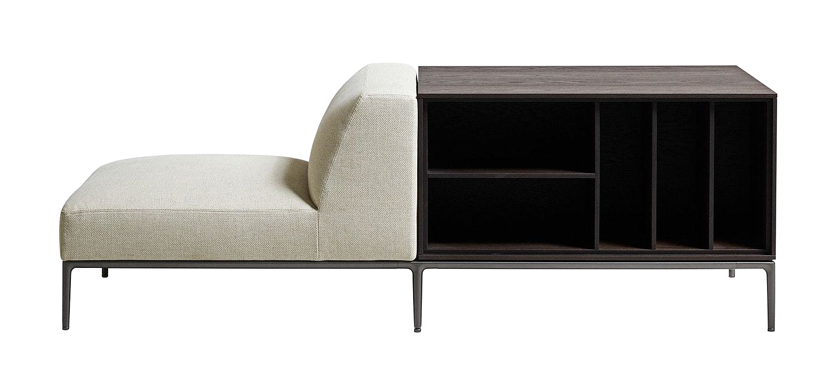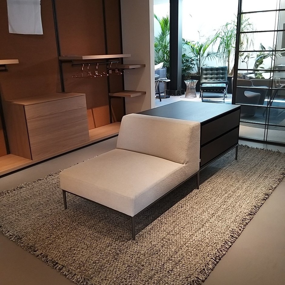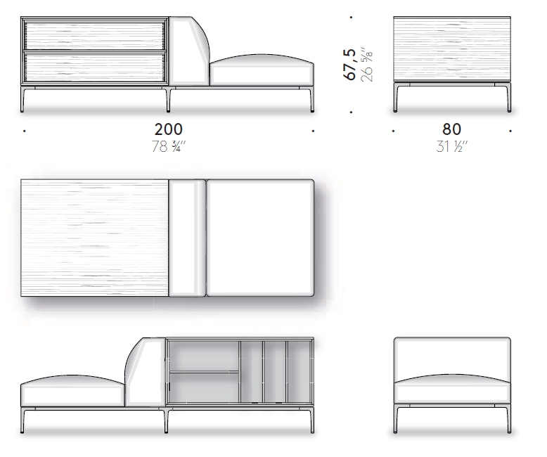 Горизонтальный шкафчик DePadova с сиденьем. Combi Cabinet Edition, разработанный Пьеро Лиссони для DePadova, представляет собой шкаф с сиденьем. Ножки и перемычки изготовлены из окрашенного жидкостью алюминия цвета латуни или цвета полированной латуни с регулируемой стелькой. Конструкция контейнеров выполнена из МДФ, шпонированного копченым дубом, покрытого прозрачным лаком на водной основе или на основе растворителя. Верхняя часть шкафа выполнена из отражающего стекла или мрамора, окрашенного в кофейный цвет. Сиденье имеет набивку из пенополиуретана различной плотности и полиэфирной ваты с подкладкой из полиэфирного вельвета. Обивка выполнена из съемной ткани или фиксированной кожи. Combi Cabinet Edition доступен в различных вариантах отделки и покрытия.