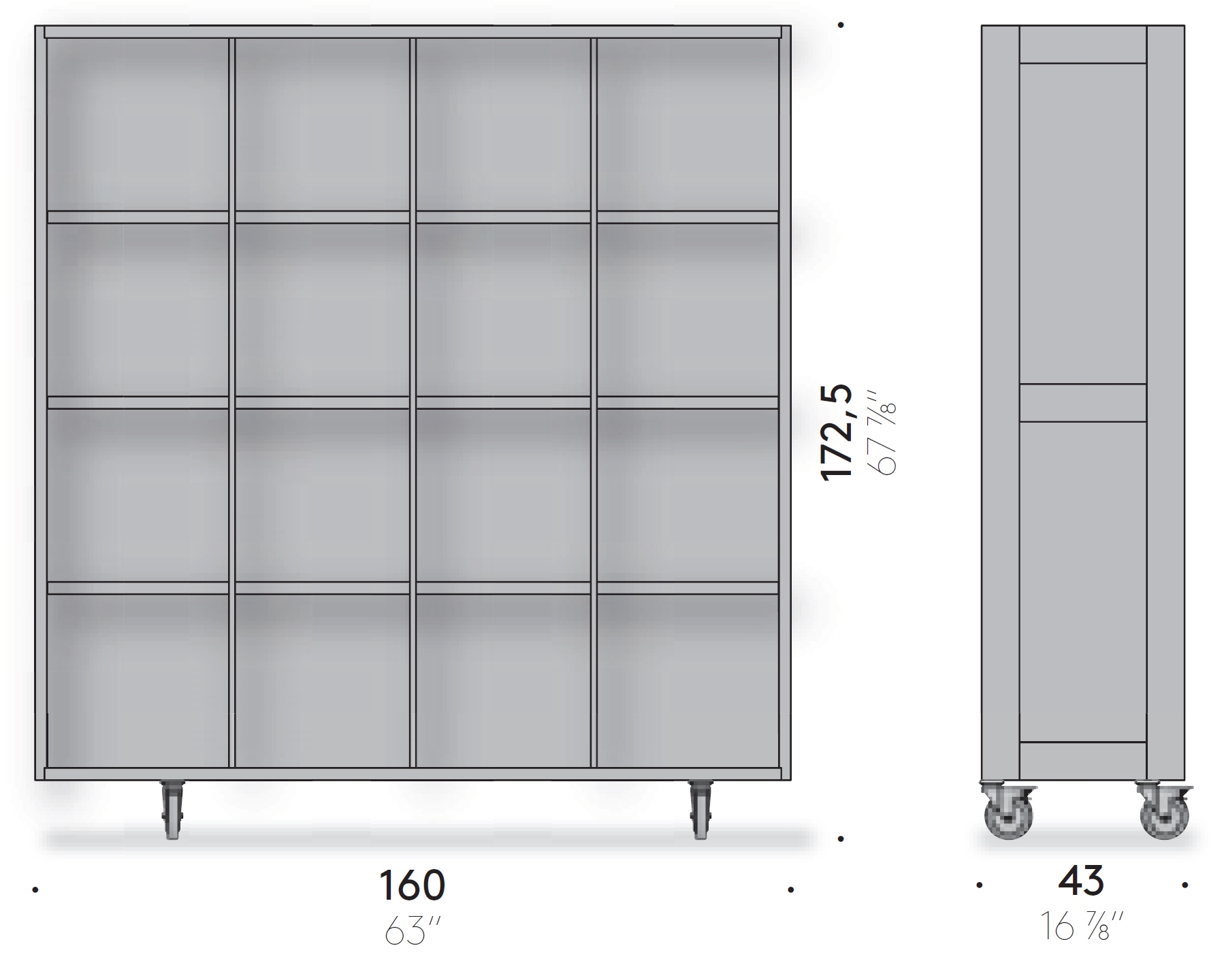 Shigeto Box DePadova Открытое хранилище Shigeto Box, разработанное Вико Маджистретти для DePadova, представляет собой открытое хранилище с каркасом и полками из массива дымчатого дуба, покрытыми прозрачным лаком на водной основе или на основе растворителя, и панелями из древесно-стружечных плит, покрытыми шпоном копченого дуба, отделанными водной краской. прозрачный лак на основе или растворителе. Перегородки изготовлены из березовой фанеры, шпонированной копченым дубом, покрытой прозрачным лаком на водной основе или на основе растворителя. Колеса поворотные, с опорой из хромированной стали и колесом с антистатическим резиновым кольцом с системой блокировки.