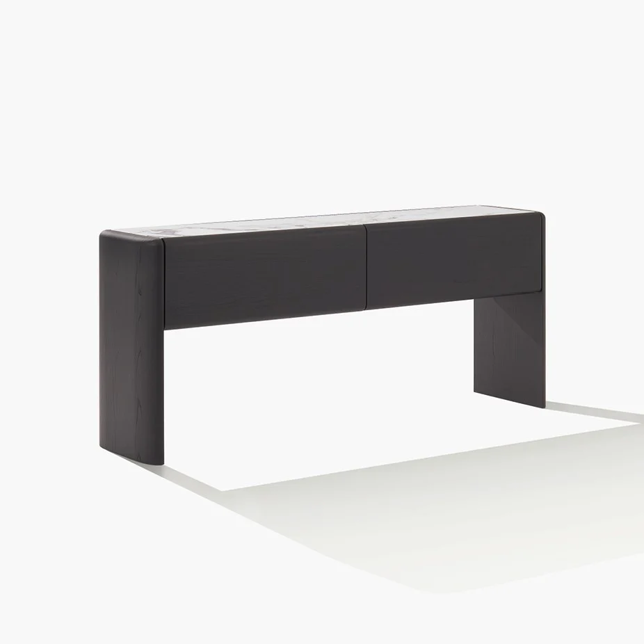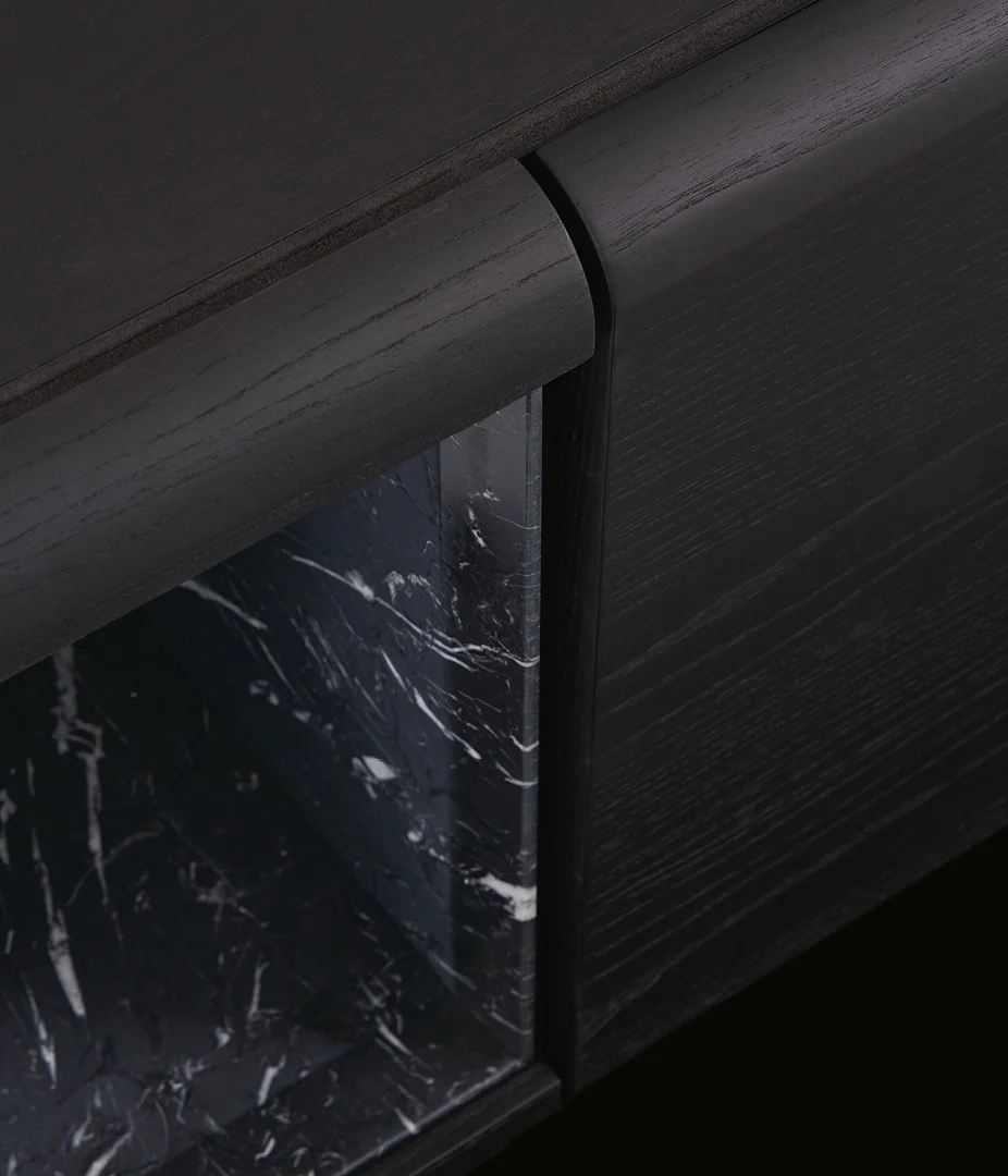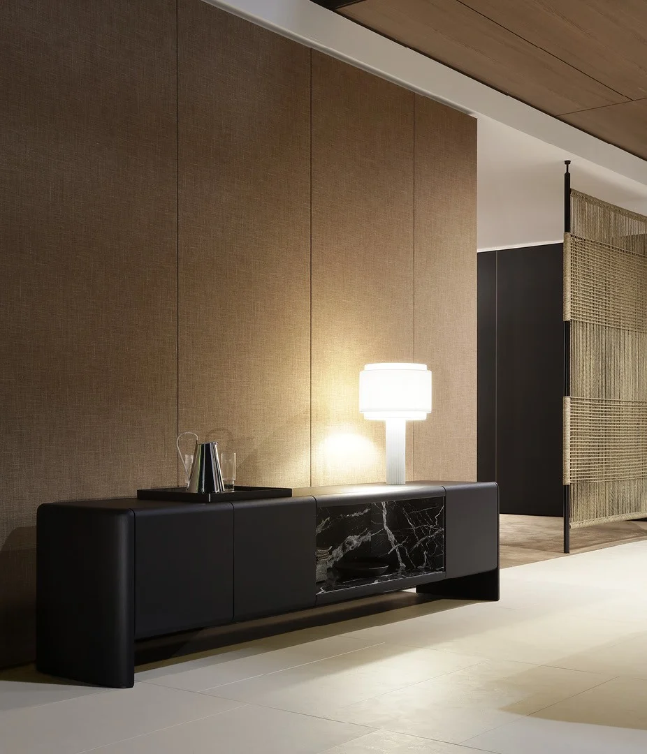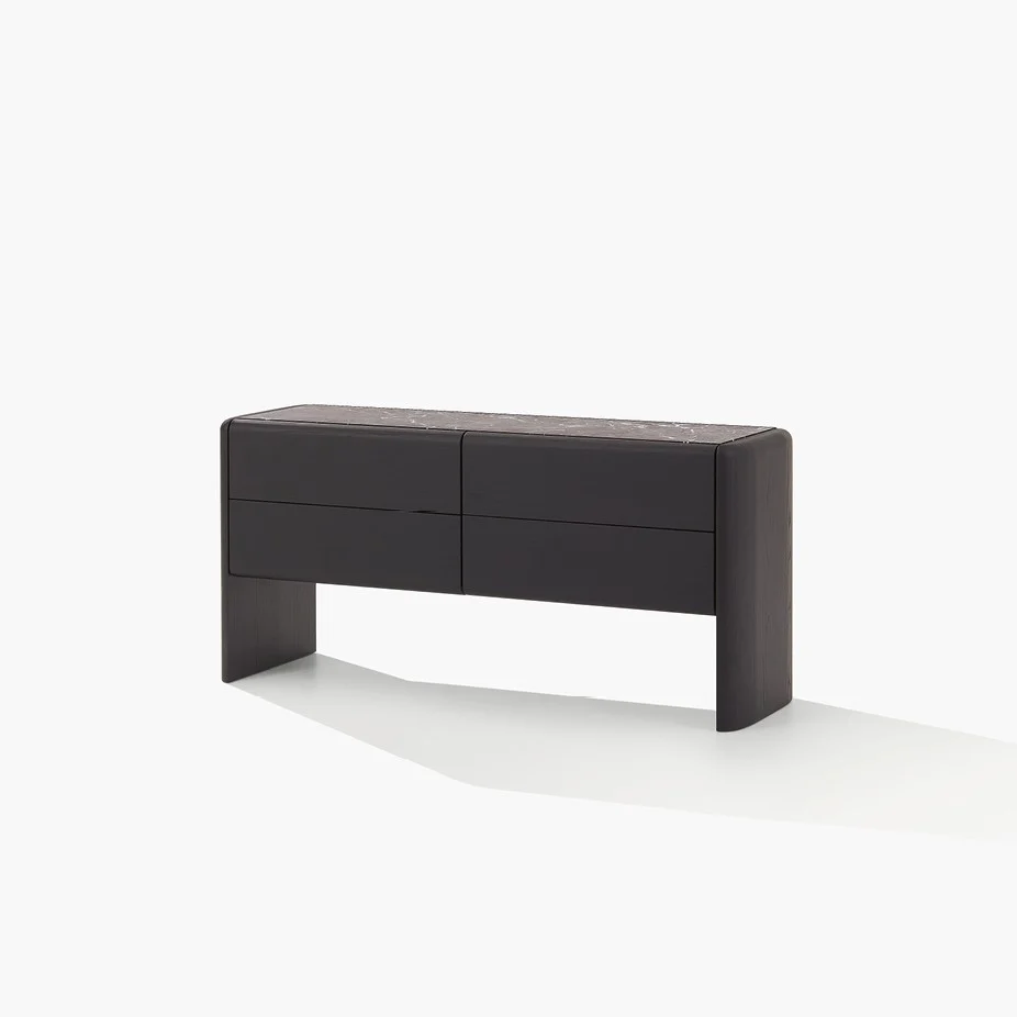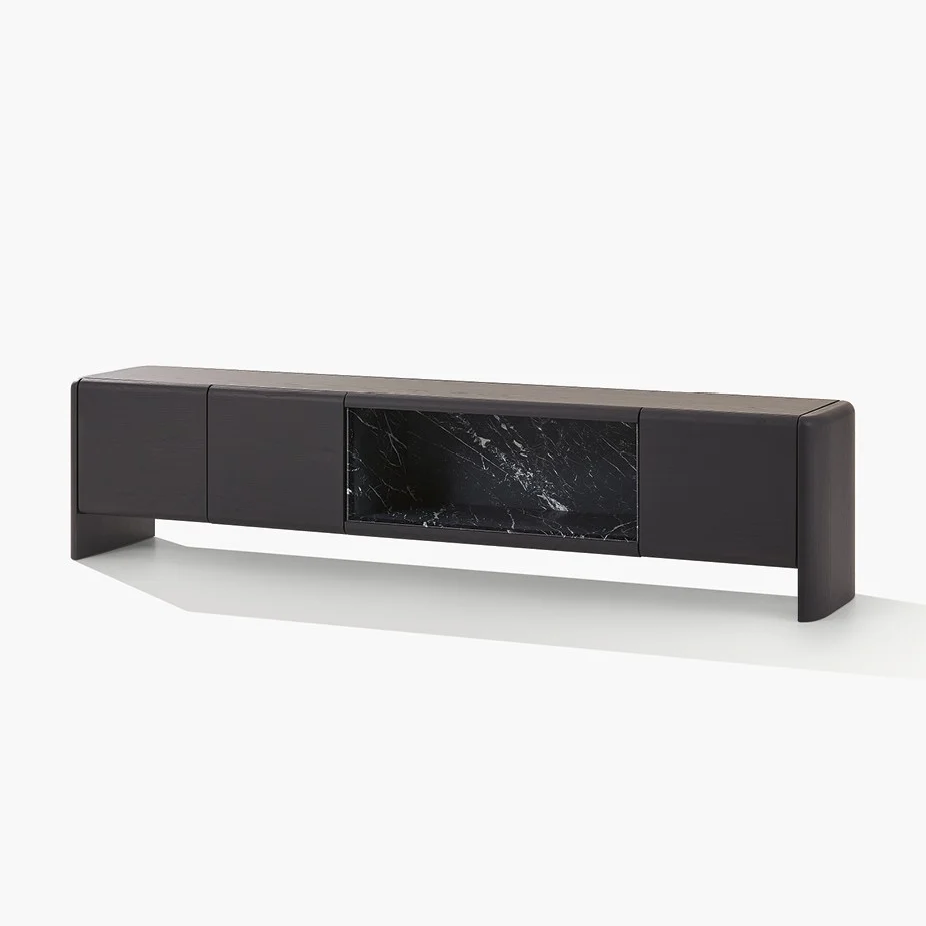 Комод Duke PoliformDuke, разработанный Жаном-Мари Массудом для Poliform, представляет собой комод, доступный в различных конфигурациях с распашными дверцами, откидными дверцами, выдвижными ящиками и открытыми отделениями. Внутренняя структура из белого дуба. Фасады, боковые панели и спинка выполнены в цвете черного вяза или глянцевого лака. Столешница из черного вяза, глянцевого лака или гладкого глянцевого мрамора. Открытое отделение из гладкого полированного мрамора.