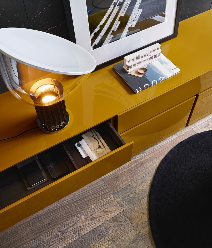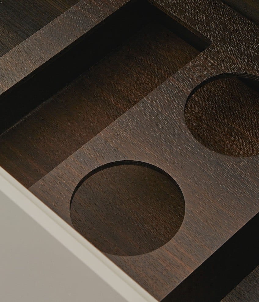 Бесплатный сервант PoliformFree, разработанный Карло Коломбо для Poliform, представляет собой сервант с матовой или глянцевой лакированной внешней структурой, матовым или деревянным лакированным профилем ручки. MFR2 с 1 дверцей, 3 ящиками, оснащенными внутренней полкой, поддоном, держателем для бутылок и выдвижным оборудованием (с зернистым дном из технопокрытия); MFR3 с 4 ящиками, оснащенными поддоном, держателем для бутылок и выдвижным оборудованием (с дном из текнопокрытия).