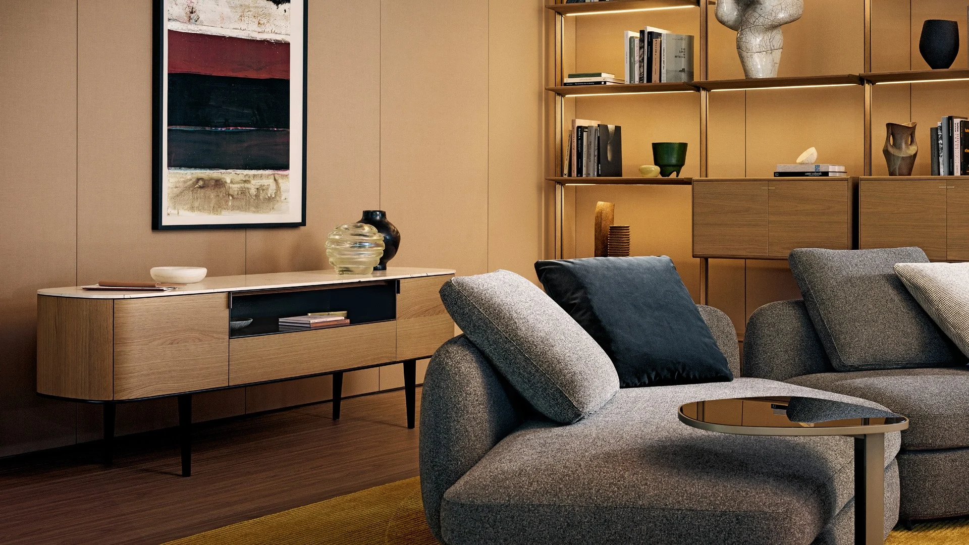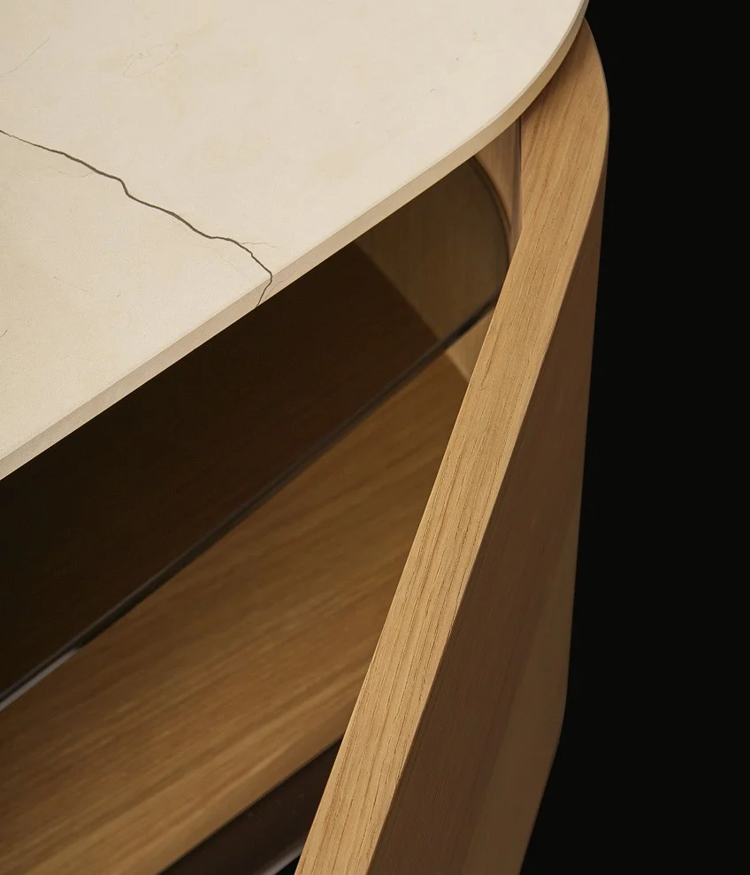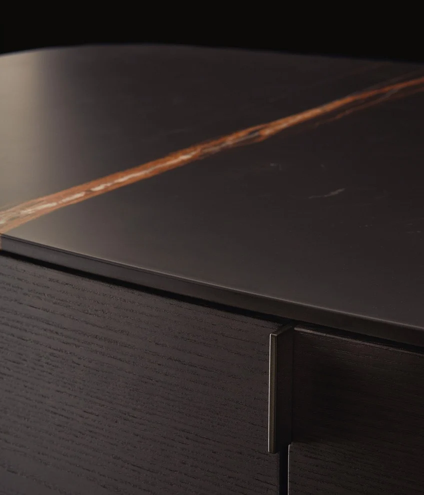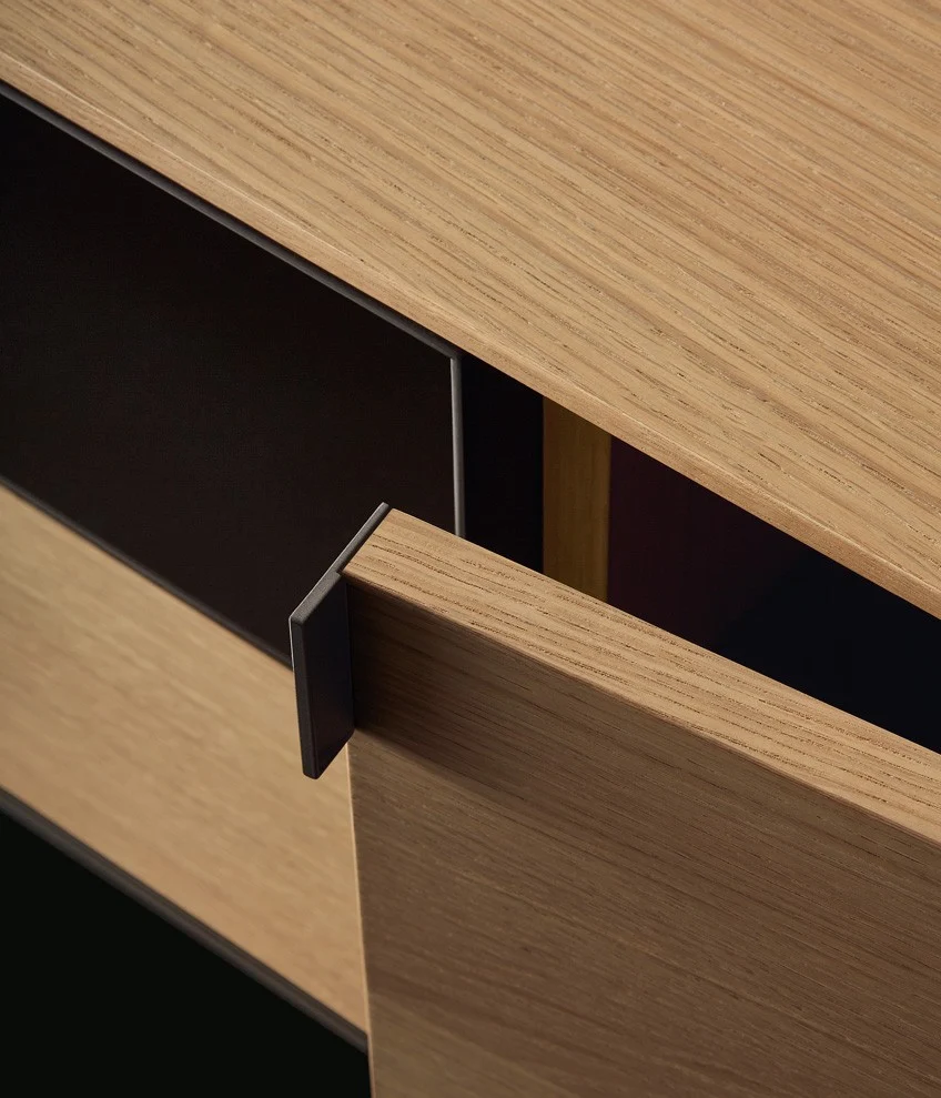 Комод Symphony PoliformSymphony, разработанный Эммануэлем Галлиной для Poliform, представляет собой коллекцию буфетов с металлическими ножками, деревянной структурой и фасадами, а также деревянной или мраморной столешницей.