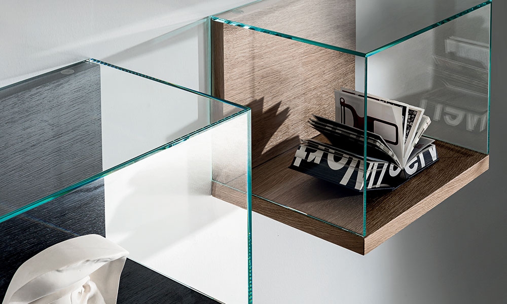 Nest Sovet TecaNest, разработанный Lievore, Altherr и Molina для Sovet, представляет собой витрину, состоящую из дубовой конструкции и сверхпрозрачной прозрачной стеклянной крышки.