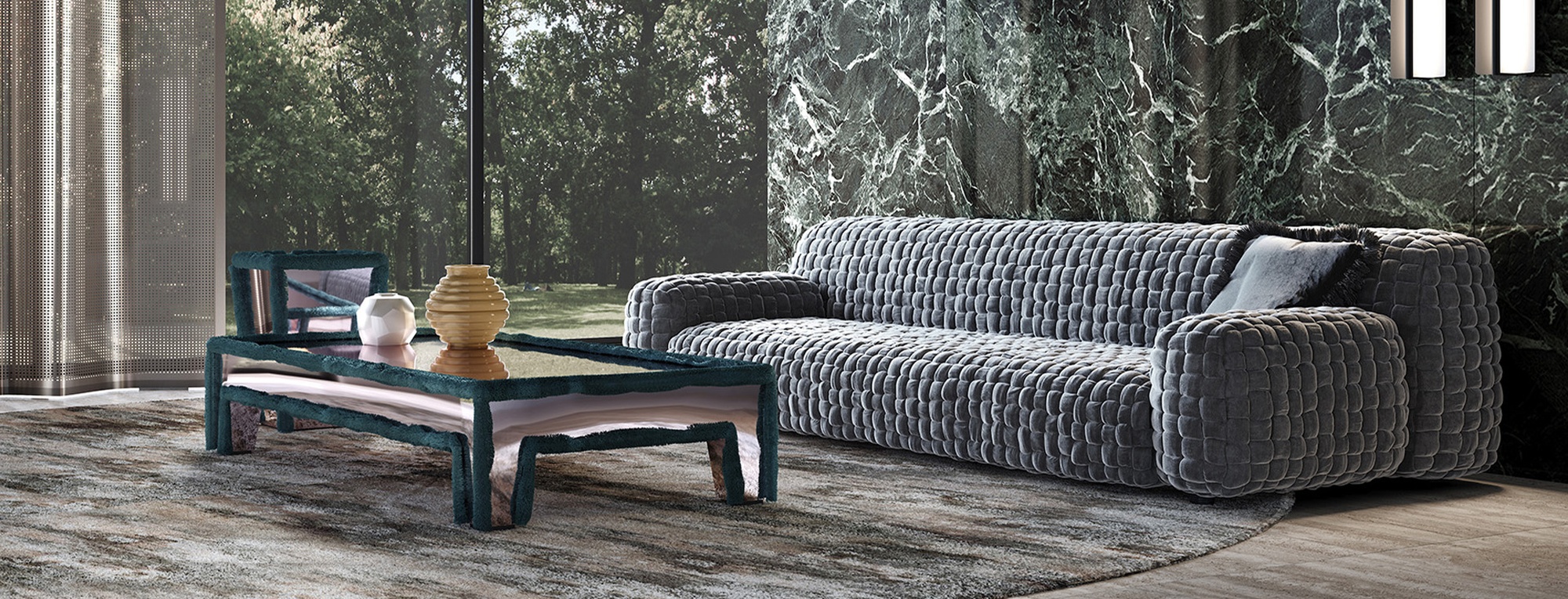 Диван Azul от Turri — уникальное произведение мебельного искусства, вдохновлённое традициями высокой моды. Модель из коллекции Azul выглядит как макроплетение из бархата: каждый элемент создаётся вручную в течение 24 часов.