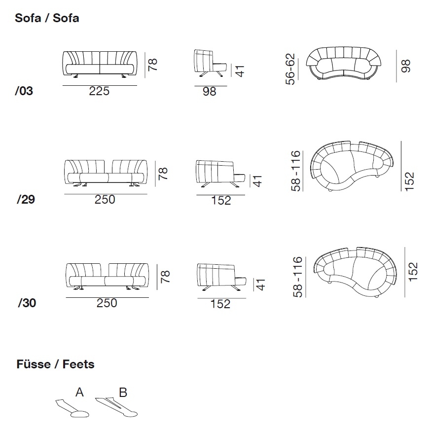 DS-164 Диван De SedeDS-164, разработанный Хьюго де Рюйтером для De Sede, представляет собой функциональный диван с двухсекционной регулируемой в поперечном направлении задней частью. Доступны различные модели и размеры, с кожаной обивкой различной отделки и металлическими ножками в двух версиях (окрашенная в черный цвет для версии с ножкой A; полированный хром для версии с ножкой B).
