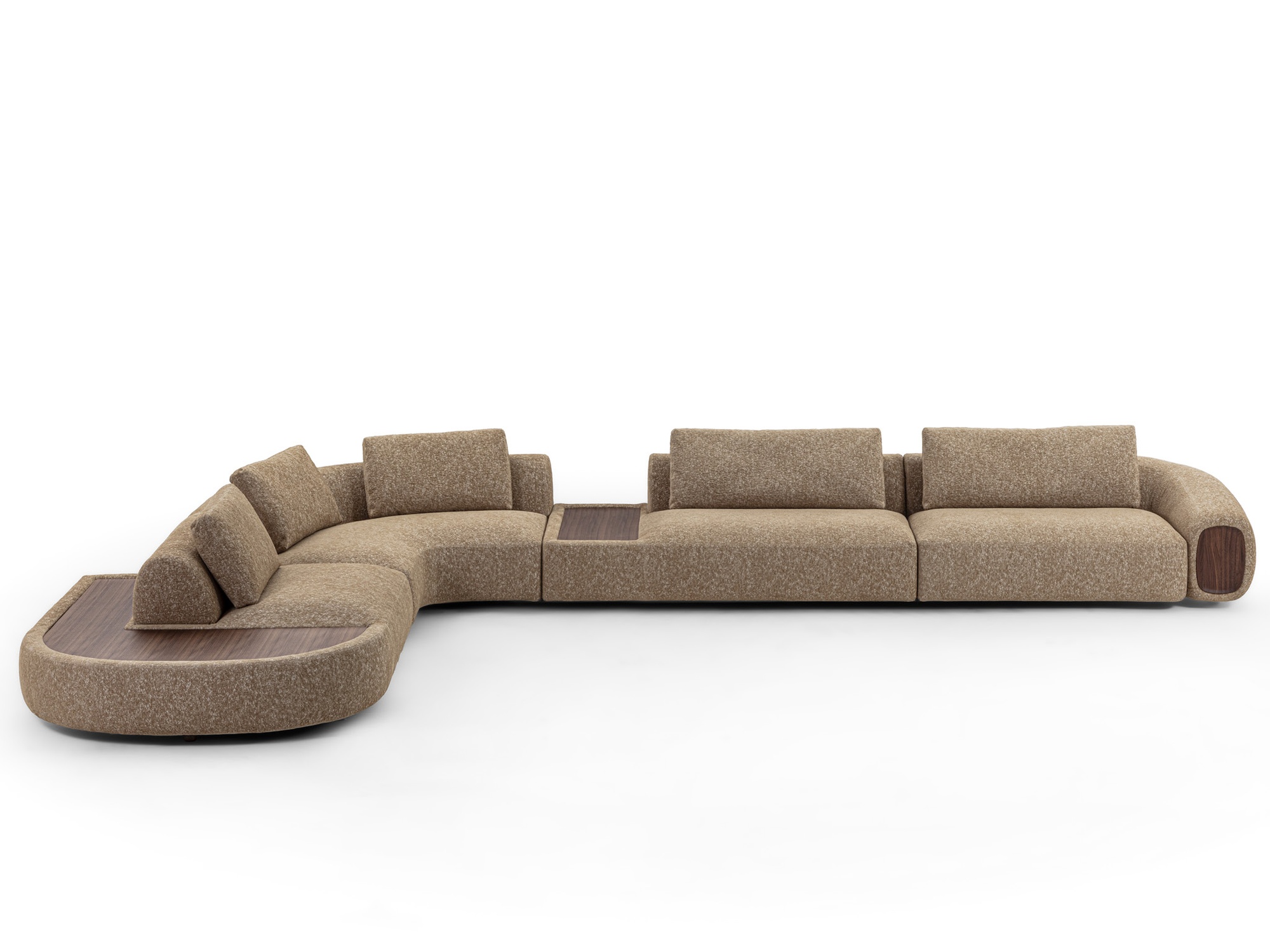 Диван RHODE от Porada — это модульная система с мягкими обволакивающими формами и непрерывными линиями, формирующими подушки сиденья и подлокотники. Широкие закруглённые подлокотники создают ощущение уюта и приглашают отдохнуть. В торцевую секцию подлокотника интегрирован столик из массива дерева, который может также размещаться между модулями, нарушая ритм посадки и создавая функциональные поверхности.