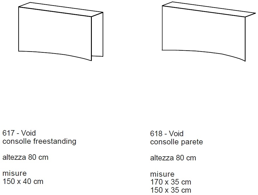 Консоль Void DesaltoVoid, разработанная Гульельмо Полетти для Desalto, представляет собой консоль из листовой стали, доступную в различных вариантах отделки. Доступен в 2 размерах.