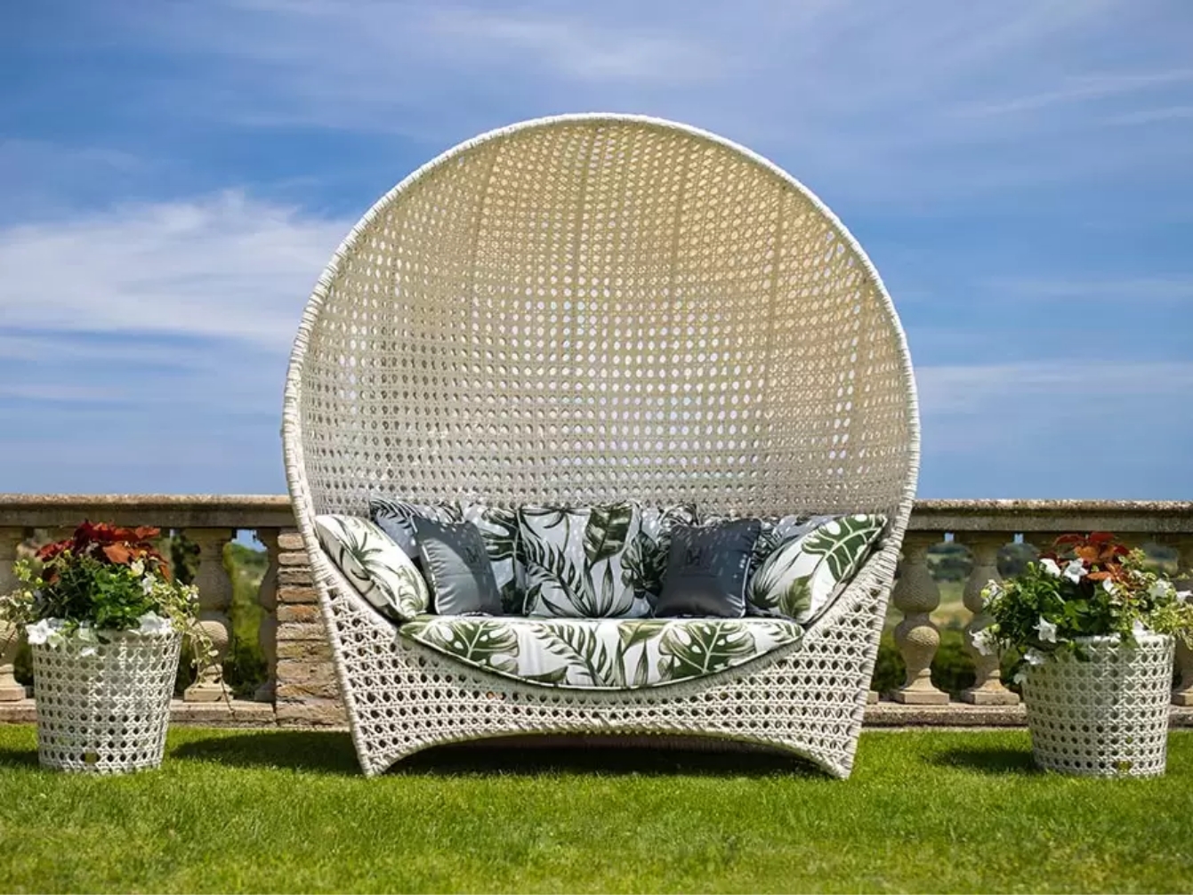 Уникальный и по-настоящему оригинальный предмет. Благодаря округлой форме Altair отсылает к образу ренессансной альковной ниши. В открытом пространстве его плавная линия дарит приватность и комфорт, превращая предмет в настоящее гнездо, в котором хочется укрыться. Конструкция полностью выполнена из синтетической смолы, что делает изделие идеальным для использования на улице. Знаковое плетение с мотивом венского ротанга представлено здесь в oversized-версии, образующей крупную текстуру и создающей очаровательный декоративный эффект. Эта фактура требует крайне сложного процесса изготовления и, как и каждый предмет коллекции Samuele Mazza Outdoor, выполняется исключительно вручную. Это уникальная вещь, которую можно идеально сочетать с элементами серии Wezen и легко интегрировать в самые разные пространства как выразительный предмет с одновременно классическим и гламурным дизайном. Несмотря на размеры, банкетка Altair Resin воспринимается как легкий и гармоничный элемент, который сдержанно и элегантно вписывается в outdoor-пространство, еще сильнее подчеркивая концепцию комфорта и отдыха на свежем воздухе. Уникальный и по-настоящему оригинальный предмет. Подлинность и свежесть в естественном образе.