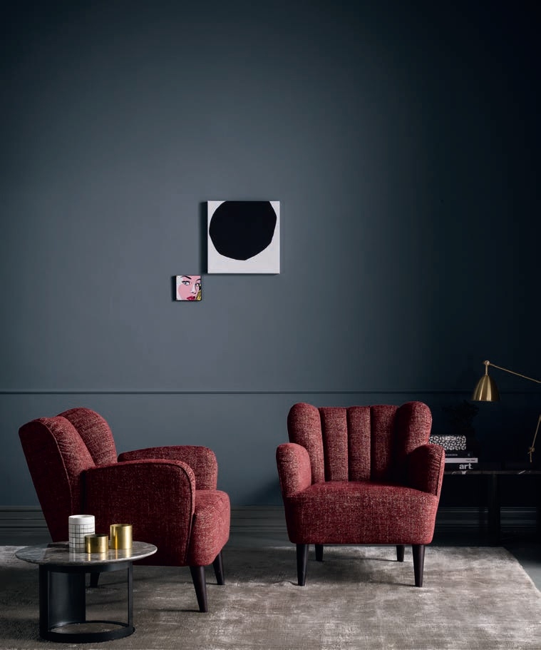 Кресло Kim BodemaKim, разработанное Джузеппе Манцони для Bodema, представляет собой кресло с деревянной конструкцией и ножками из ясеня, окрашенного венге, с несъемной крышкой. Доступны версии с подлокотниками или без них и с различной отделкой.