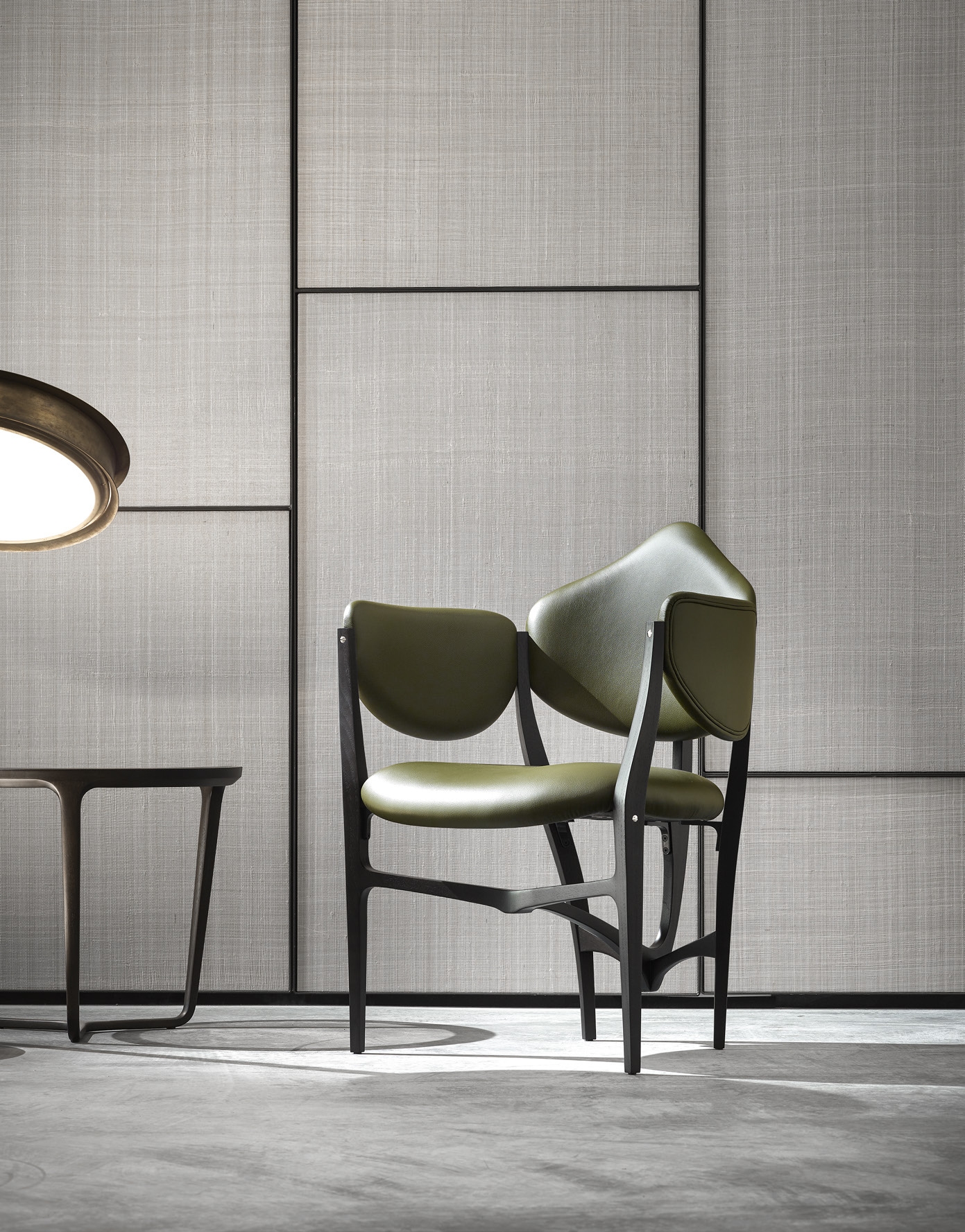 Stellage 52 Кресло Ceccotti CollezioniStellage 52, разработанное Gabetti & Isola и Raineri для Ceccotti Collezioni, представляет собой кресло с структурой из черного ясеня и отделкой из массива ореха Каналетто; сиденье, спинка и подлокотники обтянуты кожей Poltrona Frau Color Sphere или натуральной кожей.
