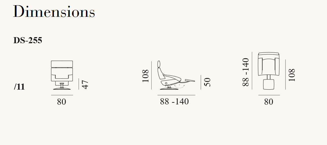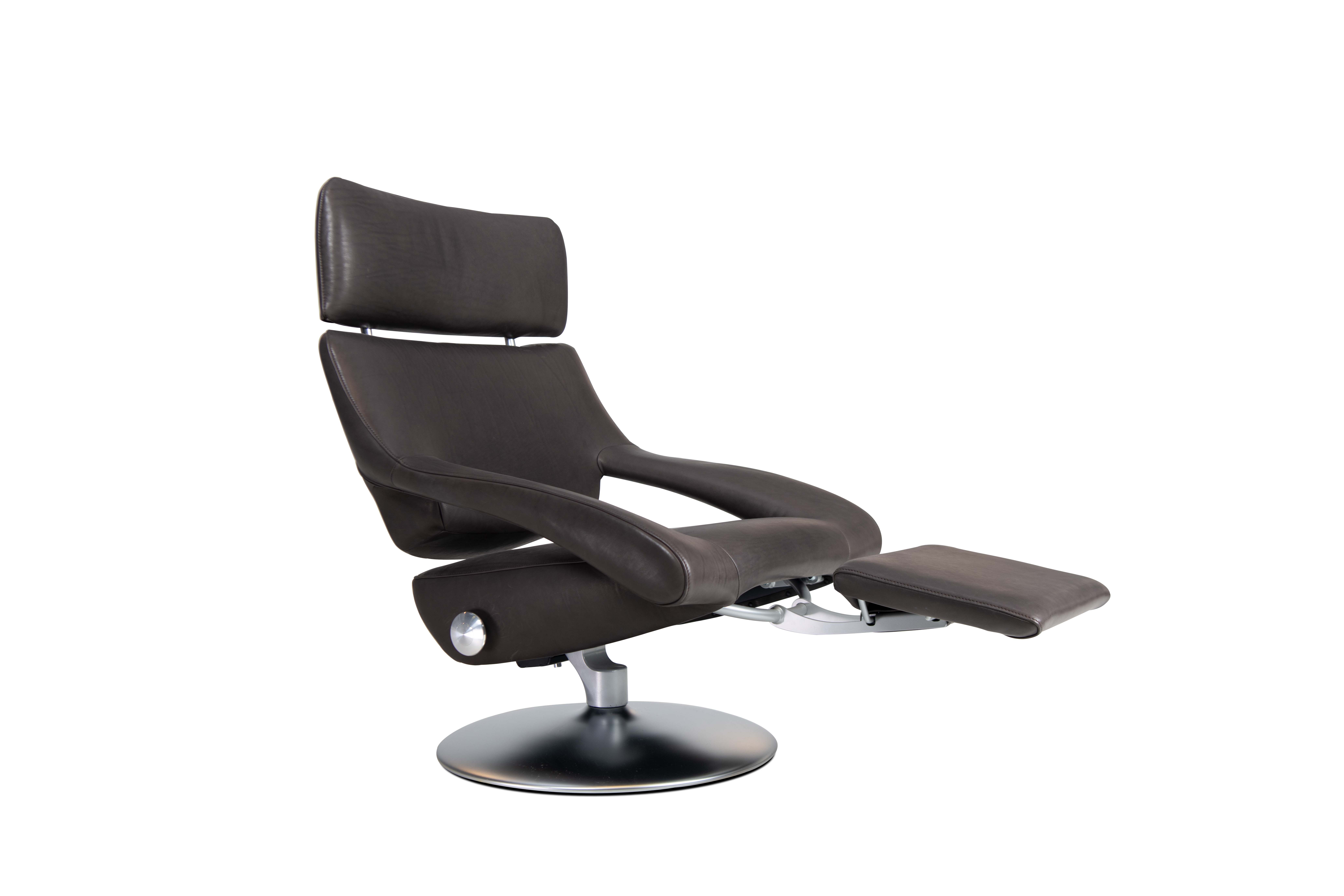 DS-255 Кресло De SedeDS-255, разработанное командой дизайнеров de Sede для De Sede, представляет собой кресло с обивкой и структурой сиденья из стали с эластичной поверхностной мембраной с точками. Поворотная пластина из матового хрома SEDEX с ватной подушкой в различных вариантах отделки. Подставка для ног является дополнительной, ее можно выдвинуть вручную и выдержать нагрузку до 30 кг.