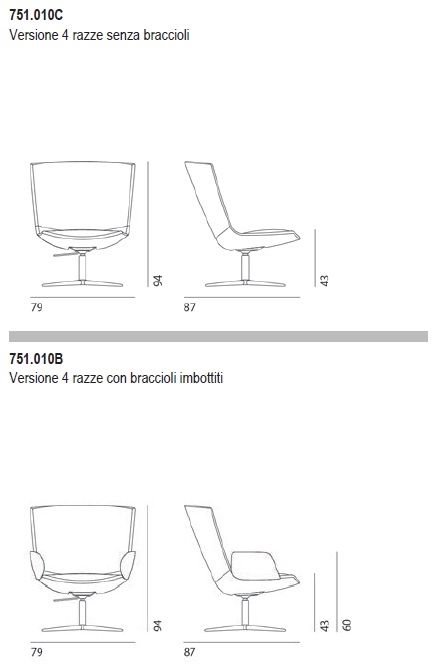 Calum Lounge Comfort Desalto Lounge Кресло Calum Lounge Comfort, разработанное Саймоном Пенгелли для Desalto, представляет собой кресло для отдыха с сиденьем, отлитым из жесткого полиуретана и набивкой из пенопласта. Поворотное алюминиевое основание, оснащенное 4-спицевым механизмом для регулировки наклона сиденья. С или без мягких подлокотников.