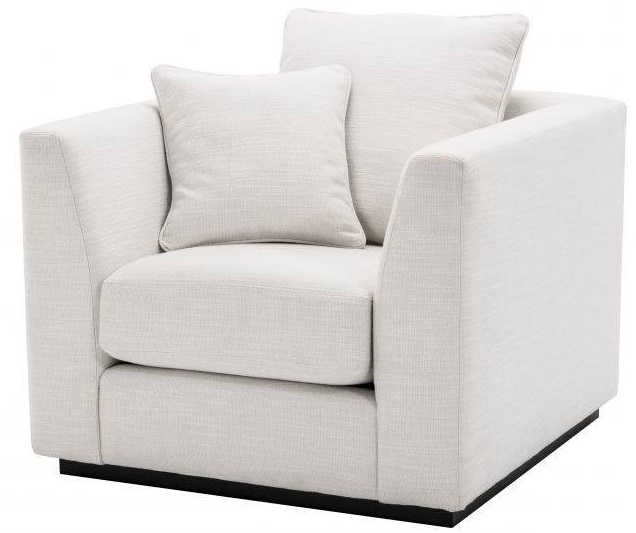 Кресло Taylor EichholtzTaylor, разработанное Eichholtz, представляет собой кресло с белой обивкой из авалона, черным основанием и двумя подушками.