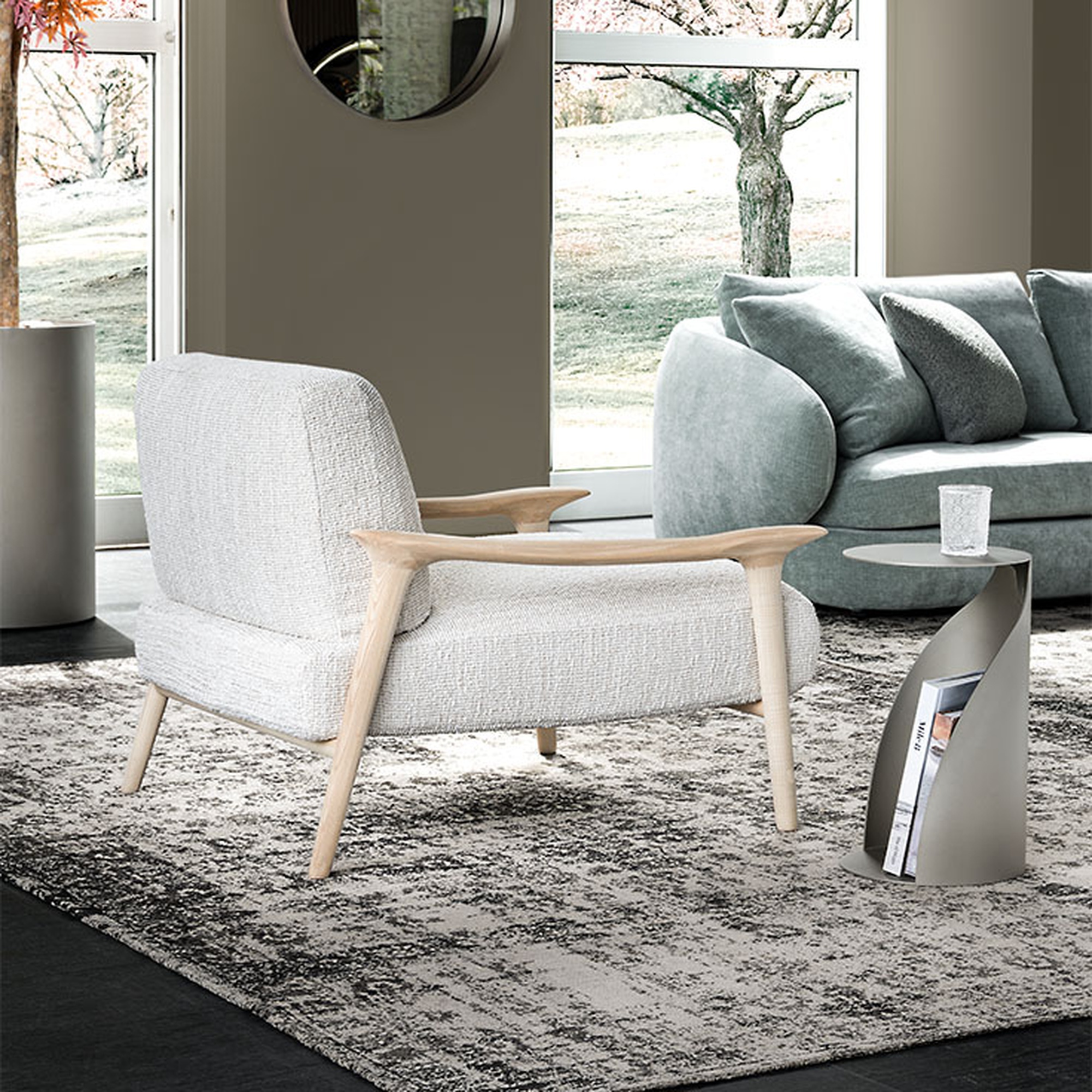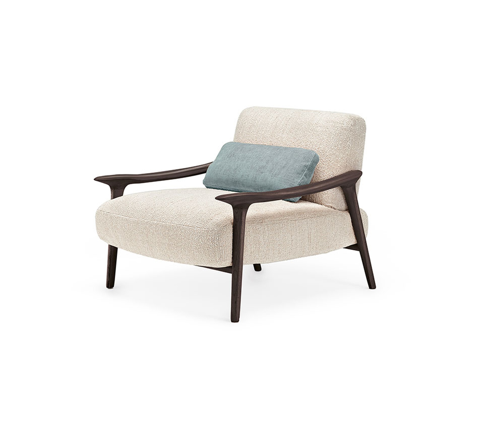 Кресло GISELLE Lounge от Cattelan Italia — это образец артистичного деревообработки и комфорта. Модель поражает кажущейся лёгкостью: мягкие подушки спинки и сиденья словно парят без видимого каркаса. Благодаря сложной конструкции подлокотник является частью несущей основы, а его закруглённая форма дарит приятные тактильные ощущения.
