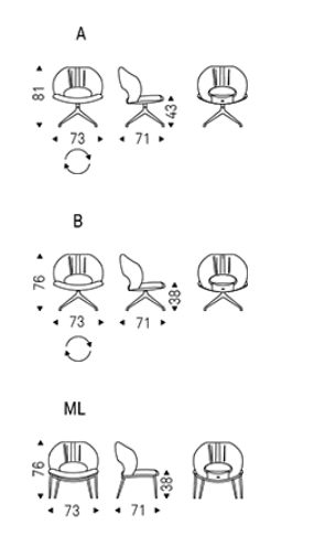 - 73x71x76h – версия ML с металлическими ножками.