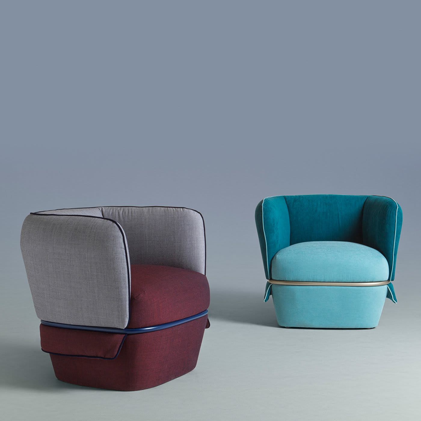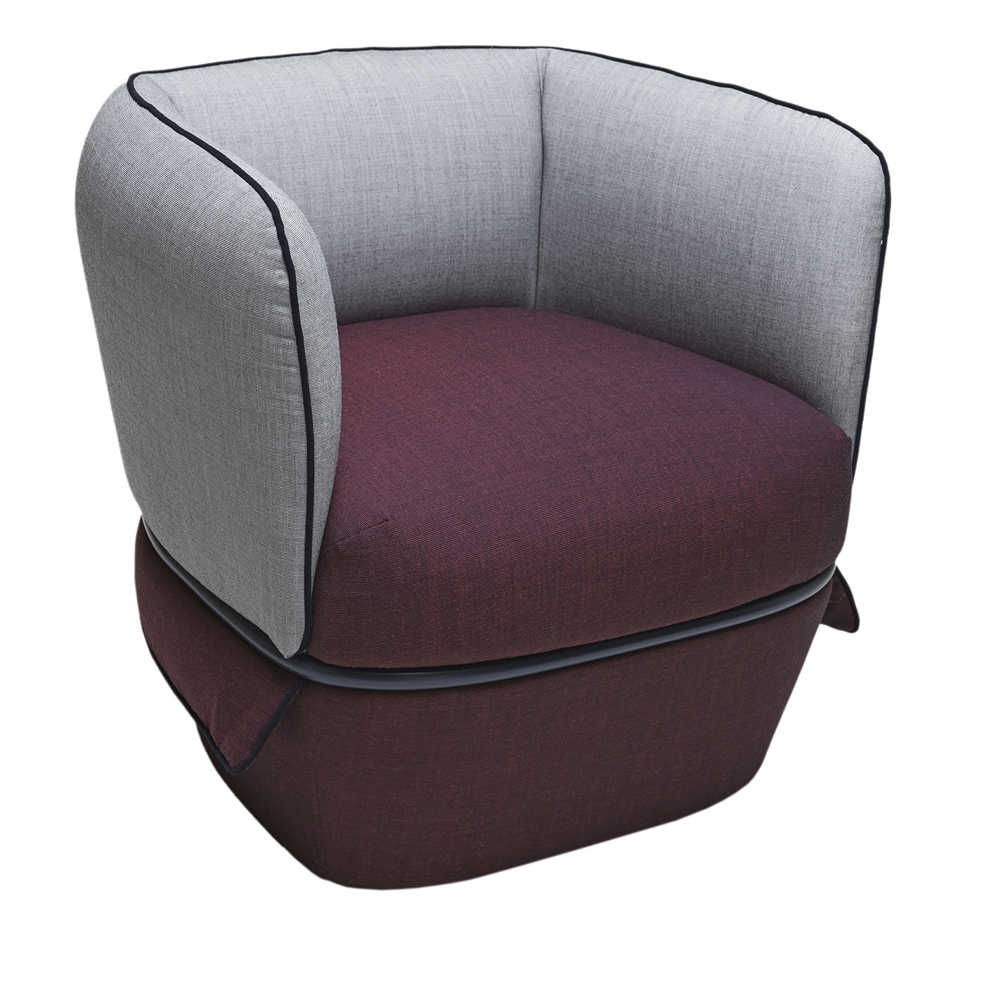 Это величественное кресло станет великолепным дополнением к интерьеру в винтажном стиле. Сочетание устойчивой к пятнам персиковой кожи светло-серого цвета (спинка и встроенные подлокотники высотой 72 см) и бордового создает привлекательный контраст оттенков, который дополняют черная окантовка и металлическое кольцо, лакированное кобальтово-синим цветом, акцентирующее основание сиденья. Мягкая полиуретановая обивка с подкладкой из полиэстера обеспечивает максимальный комфорт. Другие цвета уточняйте у консьержа.