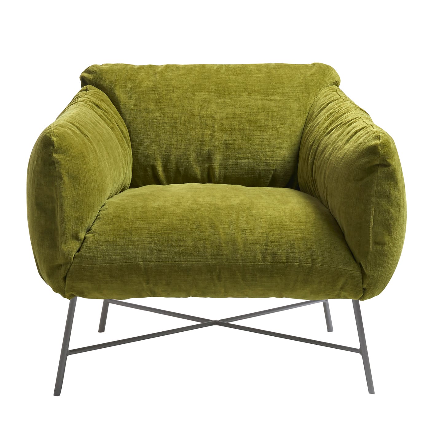 Это кресло, разработанное Анджелетти Руцца, отличается изысканной обивкой и мягкой обивкой, а также просторным сиденьем плавных форм со спинкой и подлокотниками. Основание кресла выполнено из лёгкой лакированной стали крестообразной формы. Деревянный каркас кресла обит пенополиуретаном и гусиным пером. Элегантная зелёная ткань завершает образ.