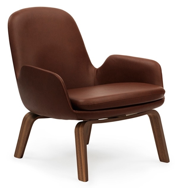 Низкое кресло Era Normann Copenhagen с деревянными ножкамиEra, разработанное Саймоном Легалдом для Normann Copenhagen, представляет собой кресло с несущей конструкцией из орехового или дубового дерева. Спинка, сиденье и подлокотники выполнены из формованного пенополиуретана, покрытого различными видами ткани или кожи. Era доступна в различных вариантах отделки.