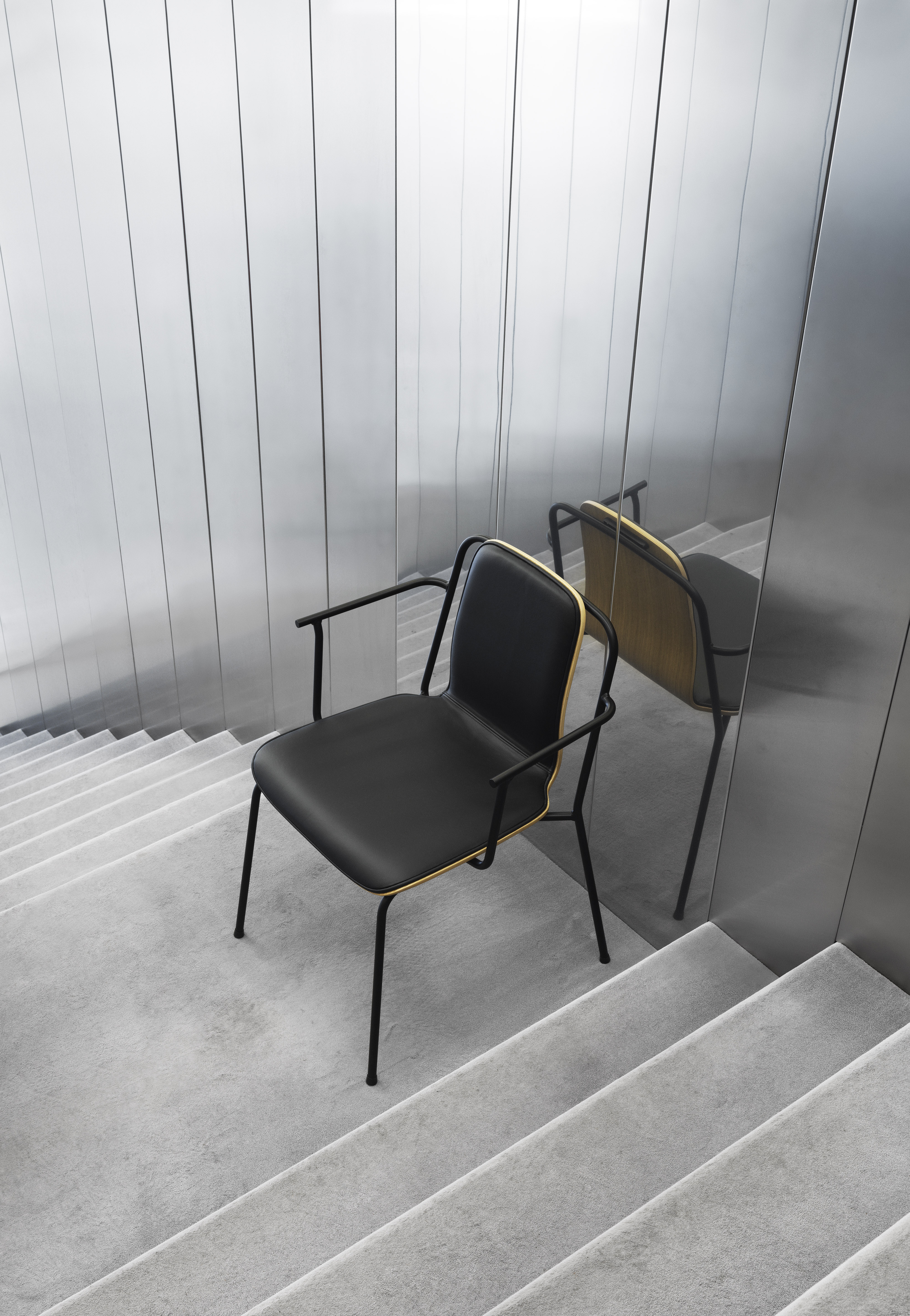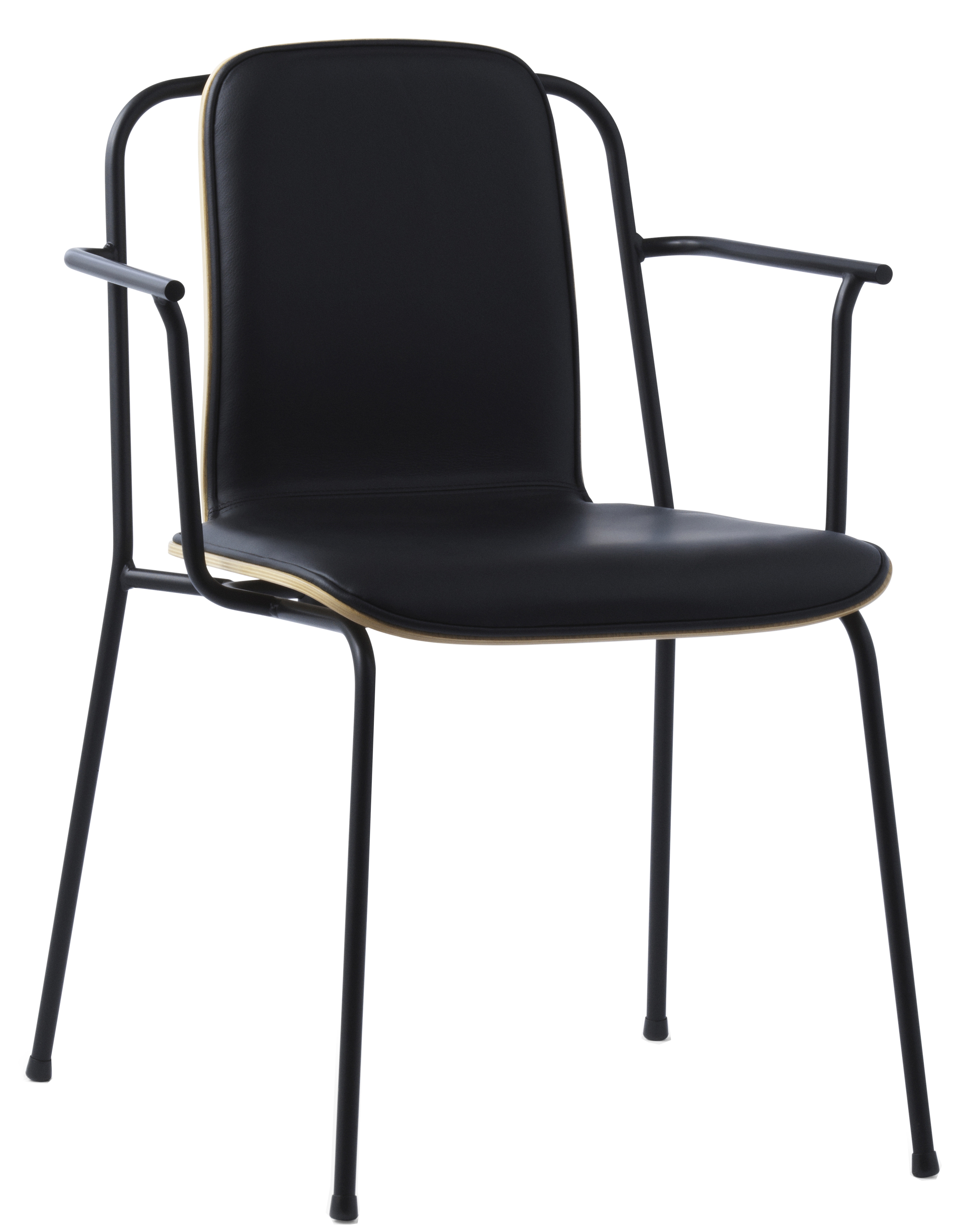 Studio Normann Copenhagen Semi Padded ArmchairStudio, разработанная Саймоном Легалдом для Normann Copenhagen, представляет собой кресло с дубовой оболочкой, покрытой кожей или тканью с различной отделкой. Несущая конструкция изготовлена из трубчатой стали с черным порошковым покрытием.
