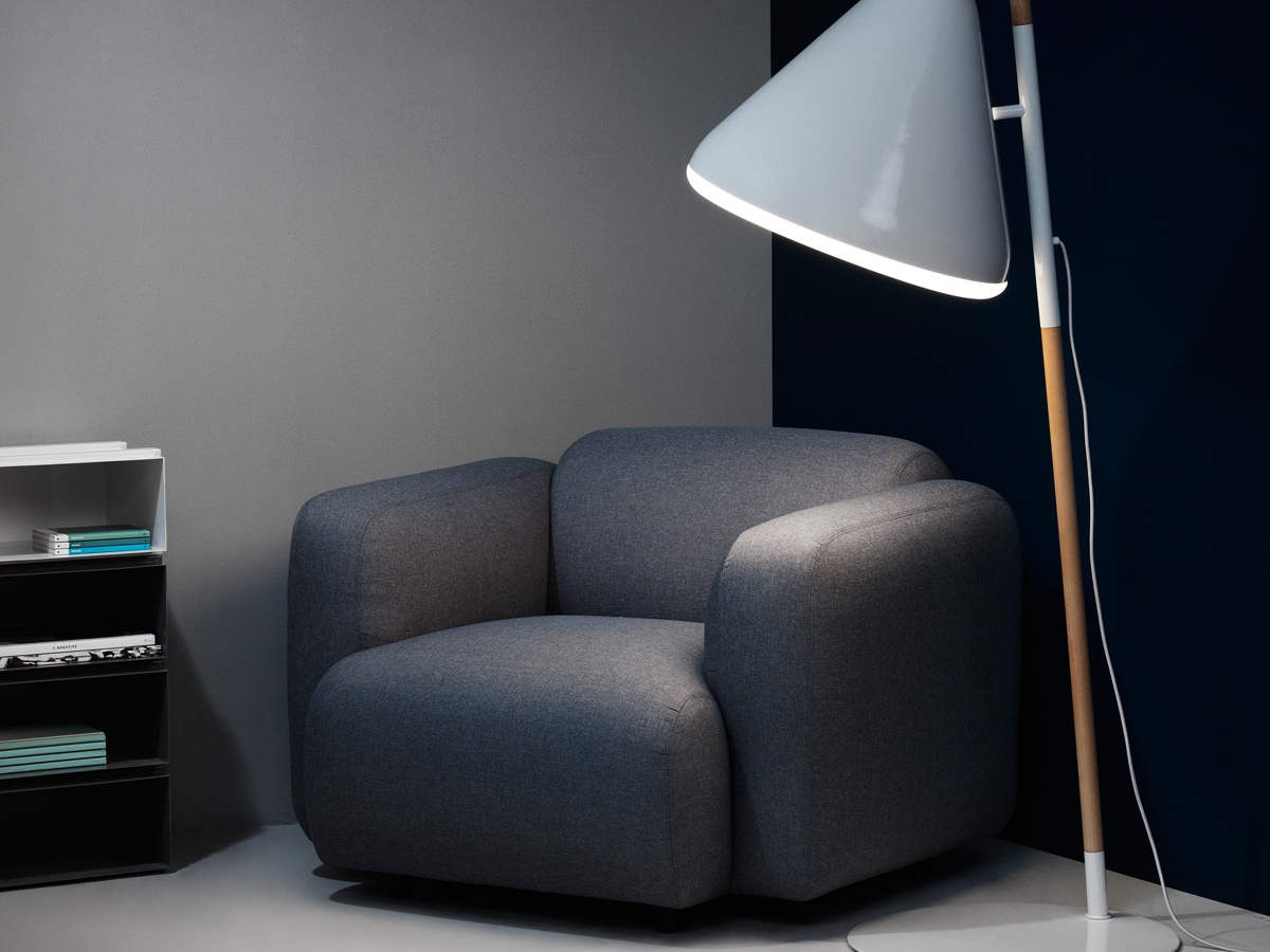 Кресло Swell Normann CopenhagenSwell, спроектированное Йонасом Вагелем для Normann Copenhagen, представляет собой кресло со структурой из дерева и пены HR, покрытой различными типами ткани. Ножки из окрашенного и лакированного ясеня.