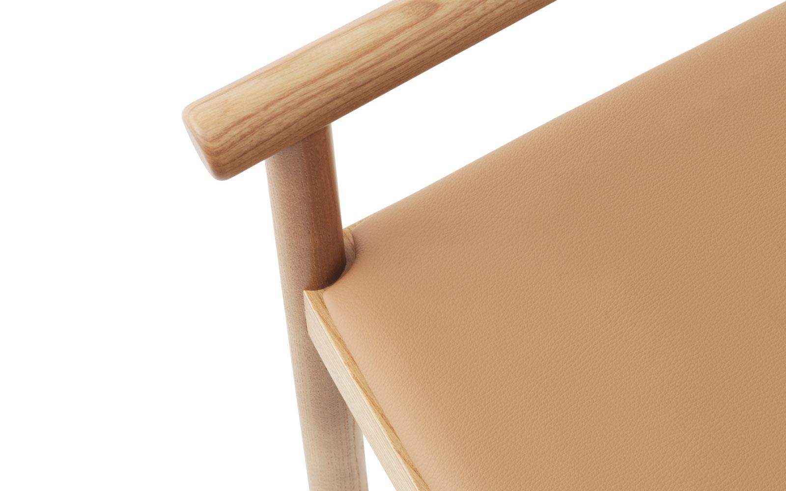 Мягкое кресло Timb Lounge Normann CopenhagenTimb Lounge, разработанное Саймоном Лильдом для Normann Copenhagen, представляет собой кресло, полностью выполненное из ясеня, с сиденьем и спинкой, обтянутыми кожей. Timb доступен с структурой черного ясеня из черной кожи или структурой натурального ясеня из кожи верблюжьего цвета.