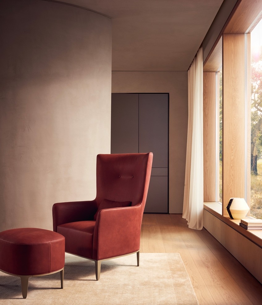 Bergerè Poliform Gentleman ReservedGentleman Reserved, разработанный Марселем Вандерсом для Poliform, представляет собой кресло с высокой спинкой, металлическим основанием и обивкой, доступной в ткани или коже.