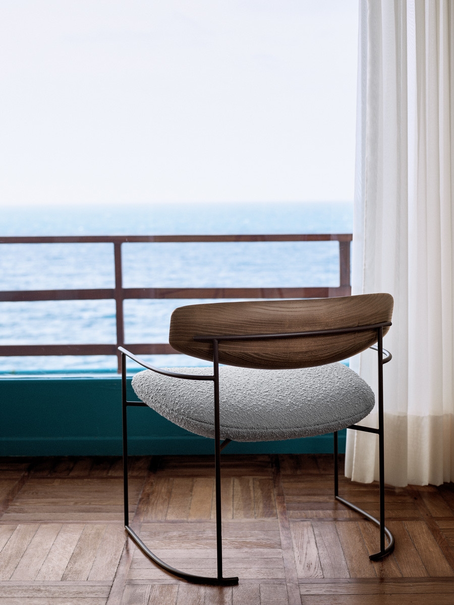 Кресло Keel PotoccoKeel, разработанное M + V для Potocco, представляет собой кресло с тисненой окрашенной металлической стержневой структурой, спинкой из массива ясеня и мягким сиденьем из огнеупорного вспененного полиуретана, обтянутого различными видами кожи, тканей или эко-кожи.