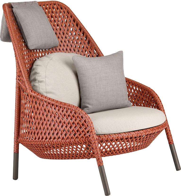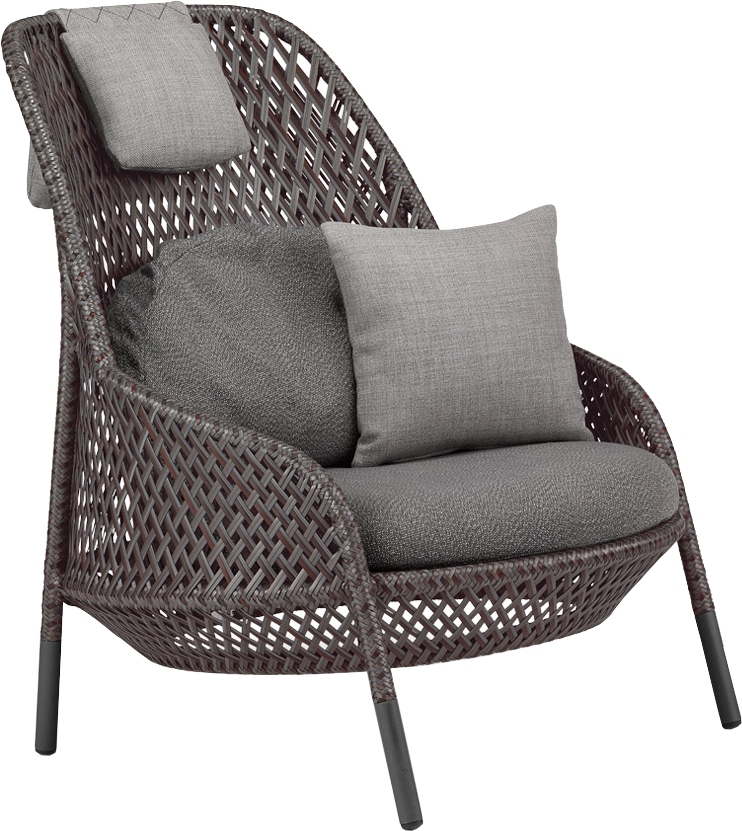 Кресло Ahnda Dedon с высокой спинкойAhnda, разработанное Стивеном Берксом для Dedon, представляет собой кресло с высокой спинкой для улицы с элегантным и изысканным дизайном. Приятные линии тканого каркаса создают удобное и изысканное сиденье. Анда обладает яркой индивидуальностью и стильно украсит любое открытое пространство. Доступен в различных вариантах отделки.