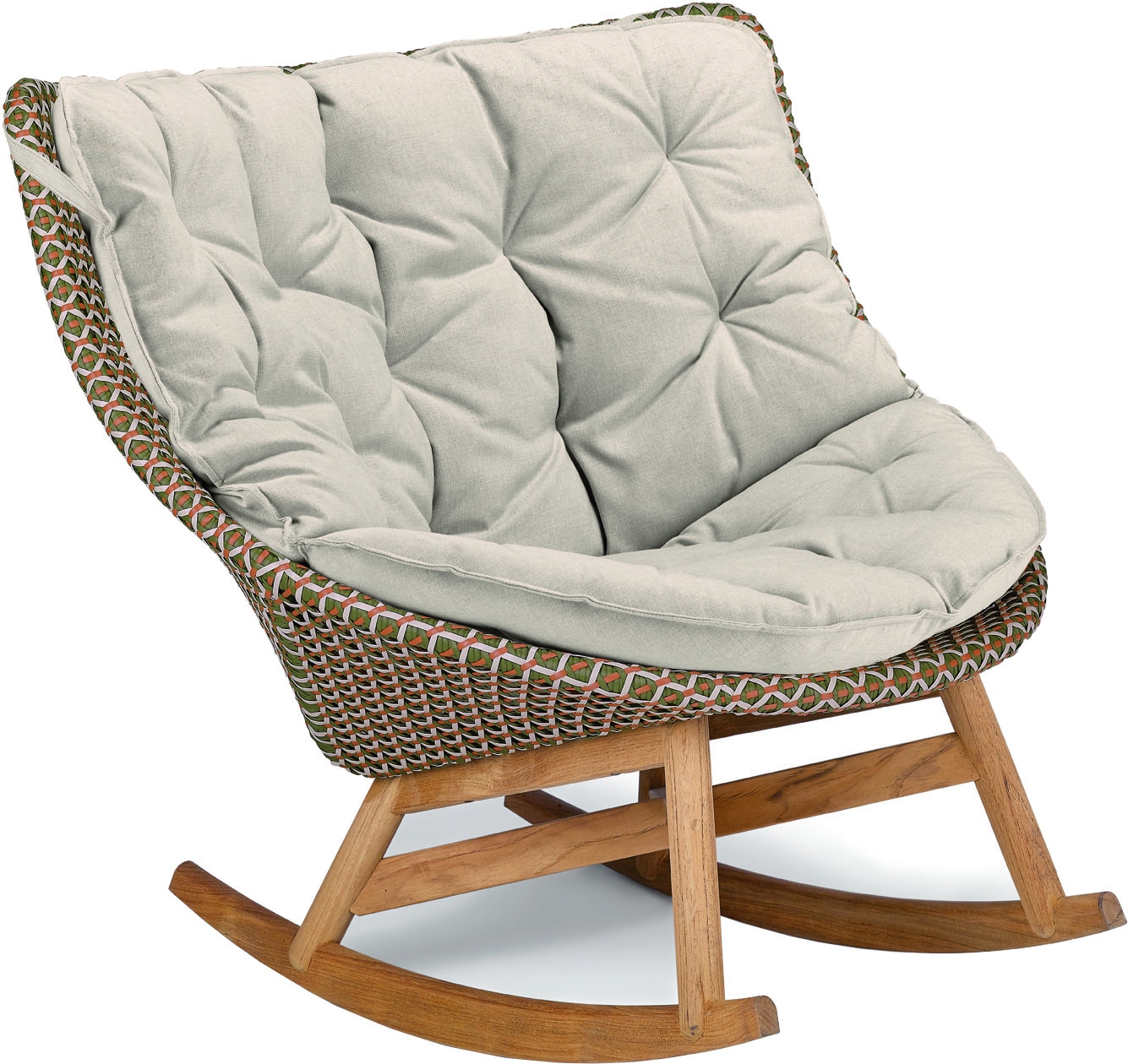Кресло-качалка Mbrace DedonКоллекция Mbrace, разработанная Себастьяном Херкнером для Dedon, доступна в различных материалах. Сиденья изготовлены из волокна DEDON, вплетенного в алюминиевую раму, а основания изготовлены из высококачественного тика. Эта красивая медленно растущая древесина, богатая натуральными дубильными маслами, обеспечивает большую долговечность в экстремальных климатических условиях. Подушки простеганы, что удерживает наполнитель на месте и обеспечивает долговечность их роскошных объятий.