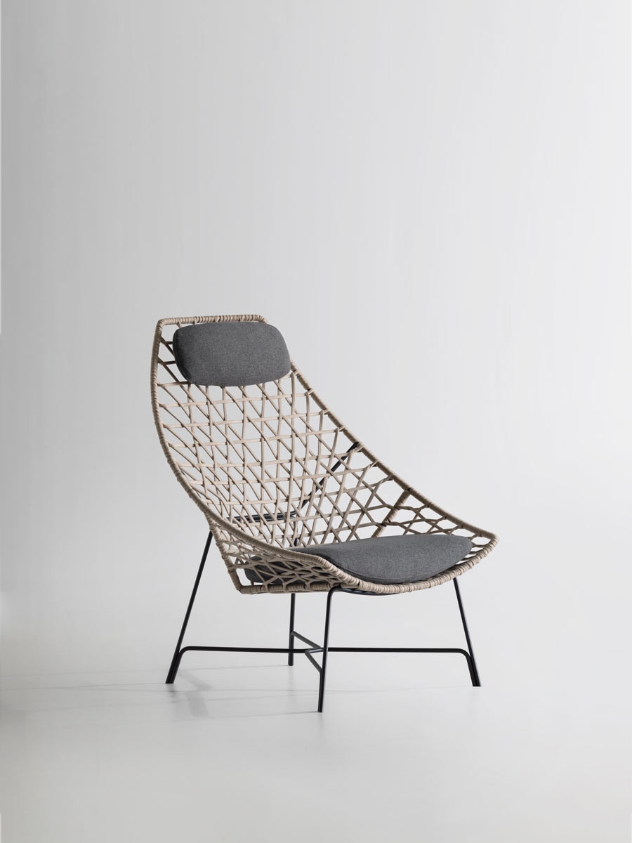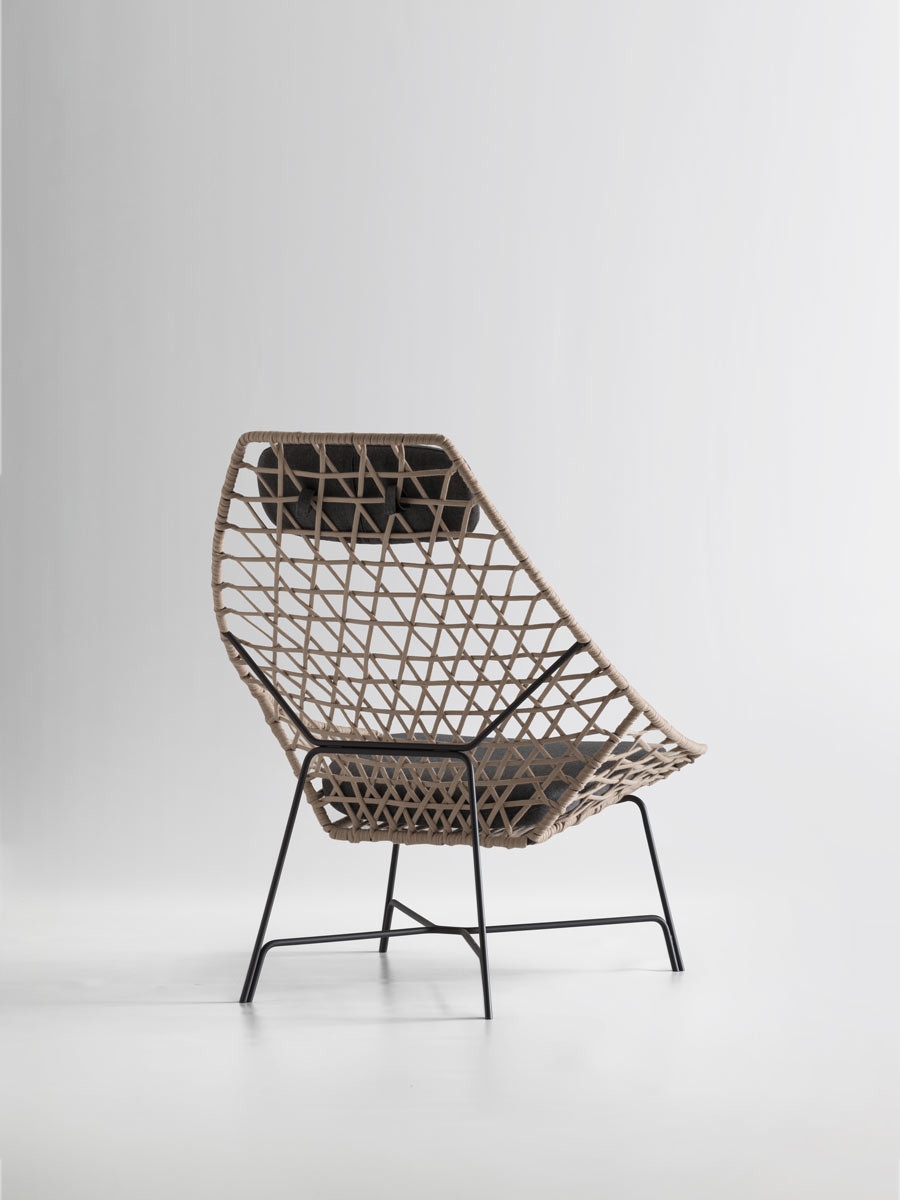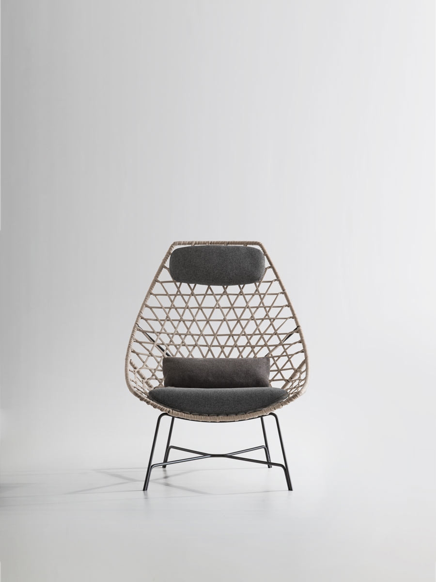 Кресло Cut Potocco BergèreCut, разработанное Стефаном Фейтом для Potocco, представляет собой кресло-бержер со структурой из стального стержня, окрашенного эпоксидными порошками и переплетенного бежевой лентой гасса. Подушка сиденья и подголовник выполнены из огнеупорного пенополиуретана, покрытого различными тканями для улицы.