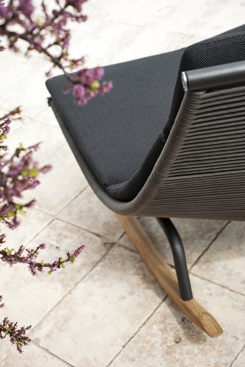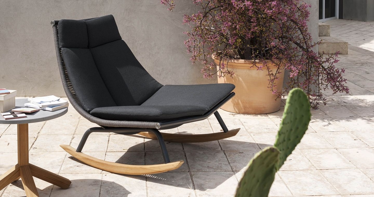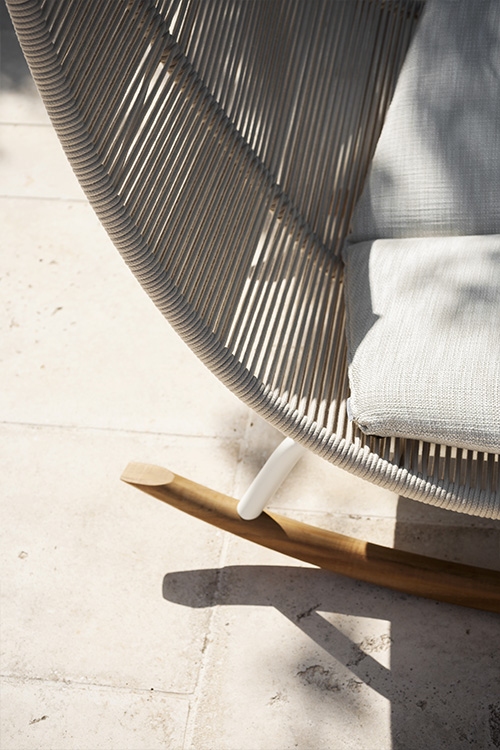 Кресло-качалка Laze Roda Laze, разработанное Гордоном Гийомье для Roda, представляет собой кресло-качалку для улицы с конструкцией из нержавеющей стали с порошковым покрытием, направляющими из тикового дерева и корпусом из полиэфирных или акриловых веревок.