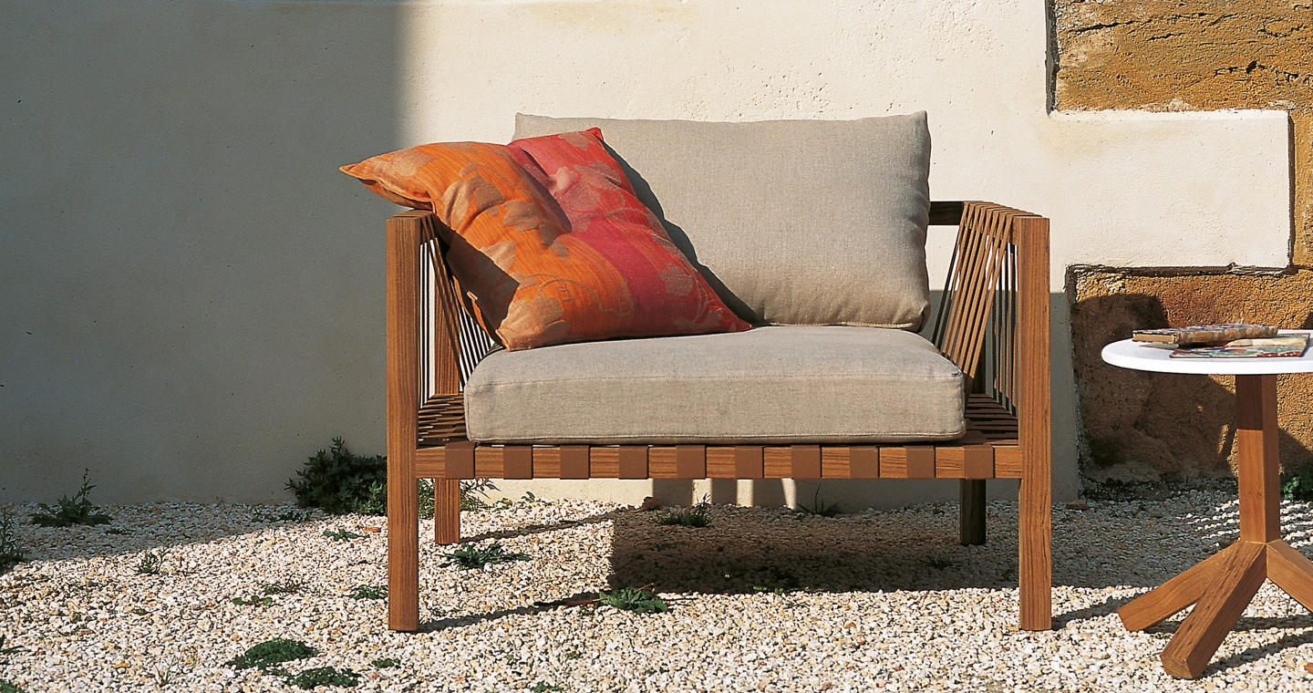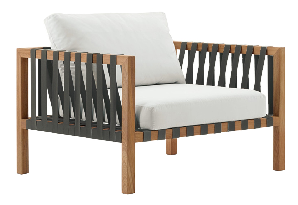 Mistral 101 Roda Кресло Mistral 101, разработанное Родольфо Дордони для Roda, представляет собой кресло с тиковой структурой и тканевыми подушками. Прочная конструкция из тикового дерева предлагается с ремешками серого, табачного или оливково-зеленого цвета.