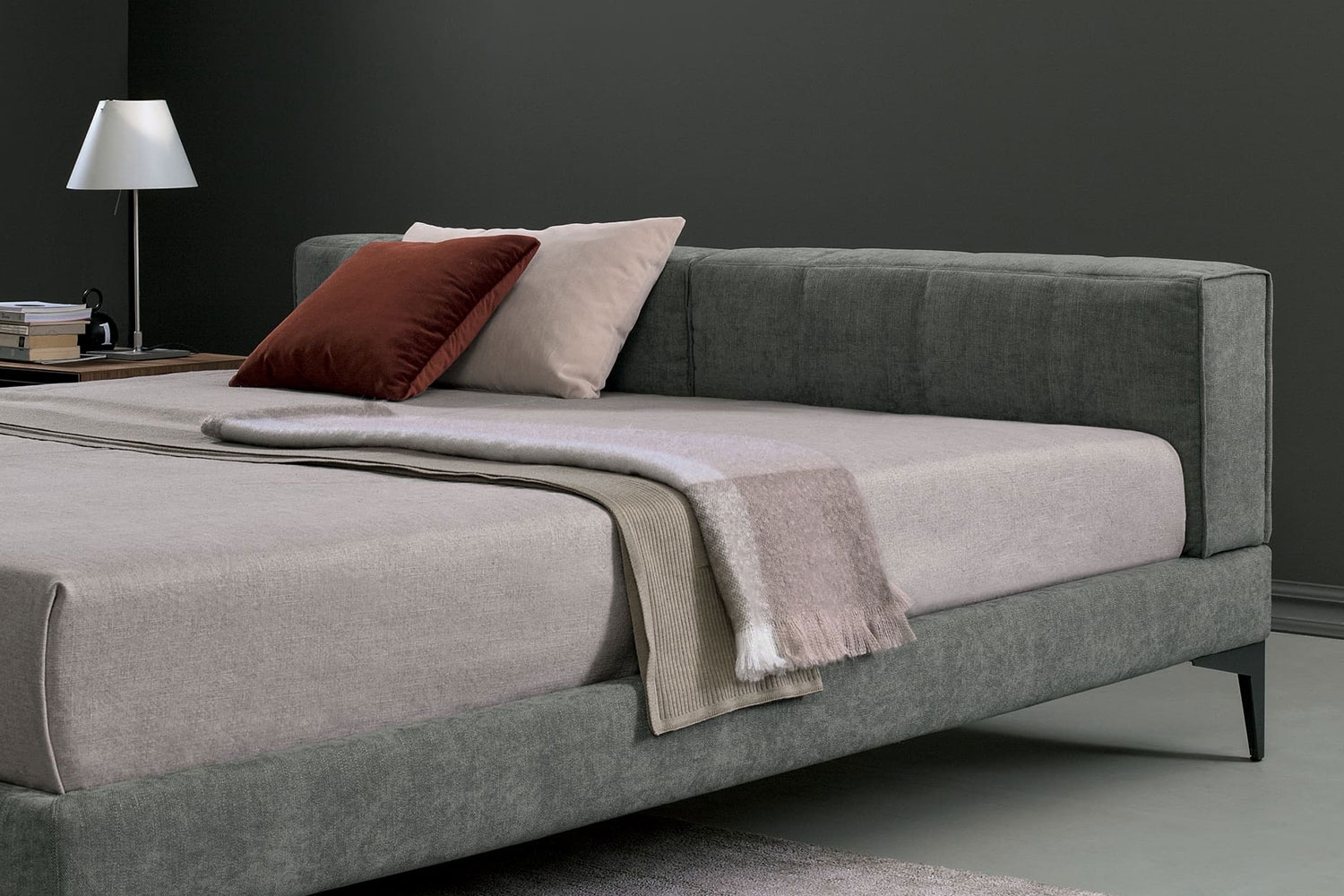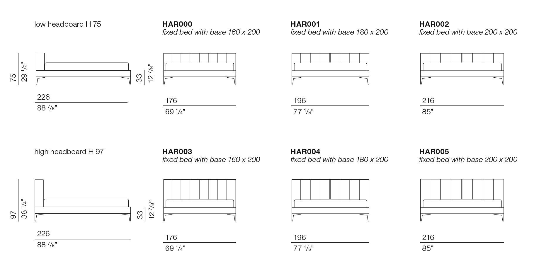Кровать Harry BodemaHarry, разработанная студией RES для Bodema, представляет собой кровать с деревянной конструкцией, покрытой пенополиуретаном. Металлическое основание и рейки из бука с регуляторами жесткости. Полиуретановая подкладка покрыта вельветовой подкладкой из нейлонового волокна. Металлические ножки с отделкой «Марганец». Полностью съемный тканевый чехол. Кожаная обивка с возможностью прострочки на каркасе кровати. Доступен с двумя вариантами высоты изголовья: 75 или 97 см.