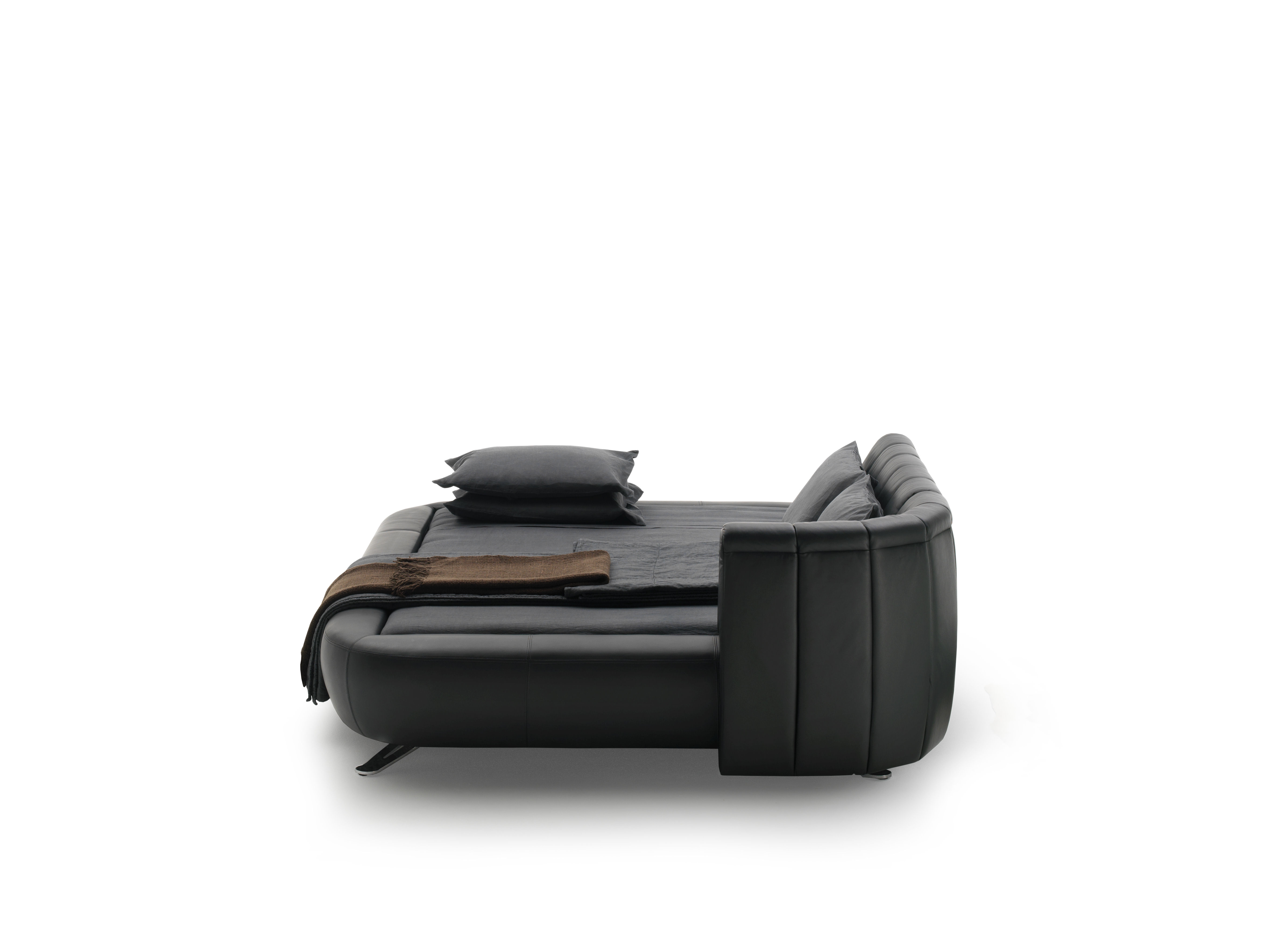 DS-1164 Кровать De SedeDS-1164, разработанная Хьюго де Рюйтером для De Sede, представляет собой кровать с металлической структурой, окрашенной в черный цвет, с краями. Край кровати из фигурного пенопластового элемента и спинка с пенопластовым покрытием SEDE-Lux в различных вариантах отделки. Доступен в различных размерах. Версия ножки А. Покрытие из алюминия или черного металла. Версия ножки B Ножка B из блестящего хромированного металла.