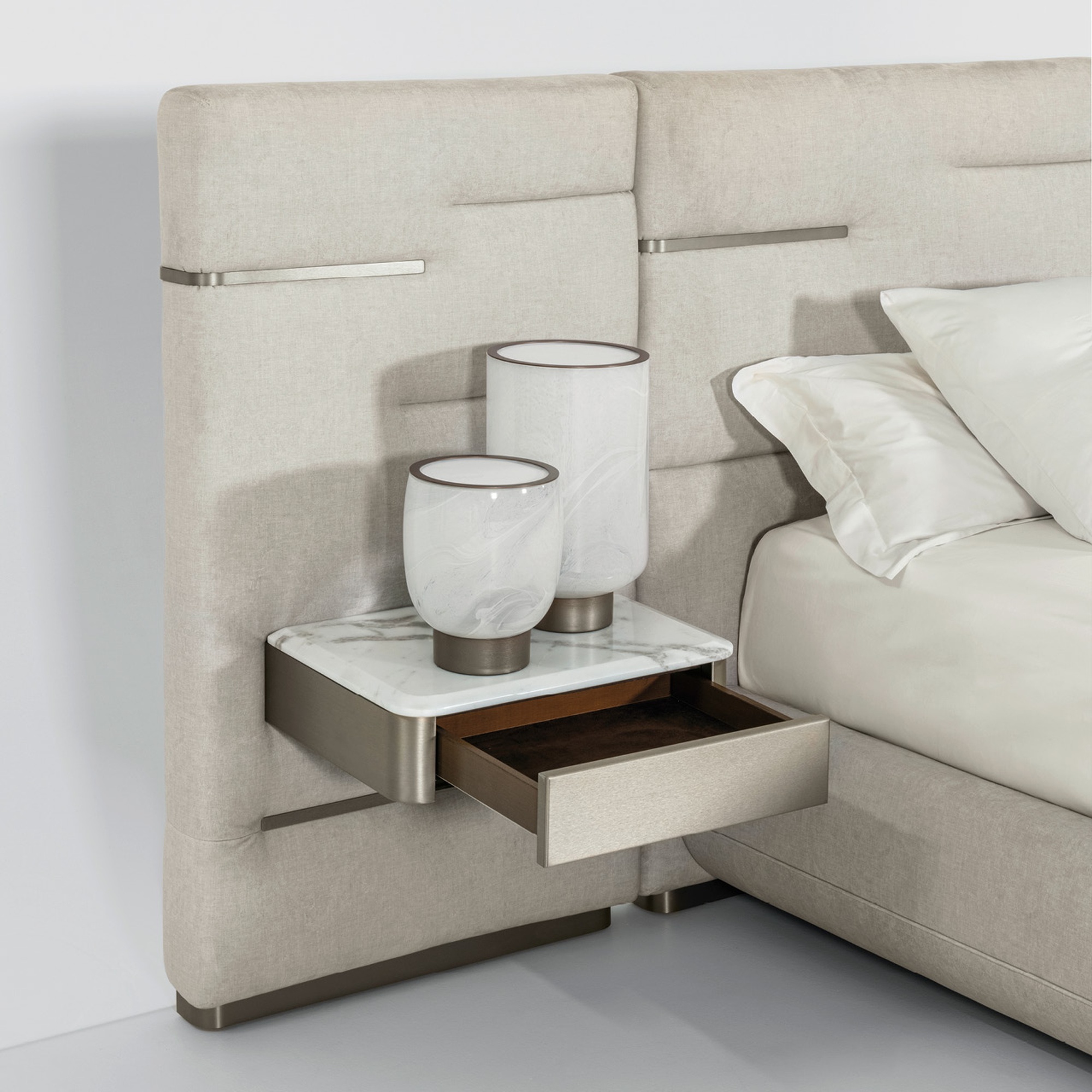 - стёганое изголовье с элементами из нержавеющей стали с сатинированным гальванизированным титановым покрытием — сочетание элегантности и прочности;