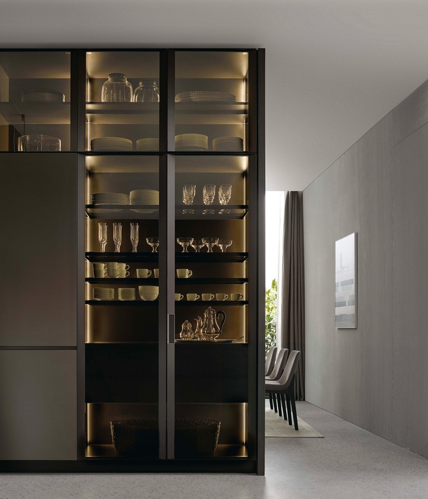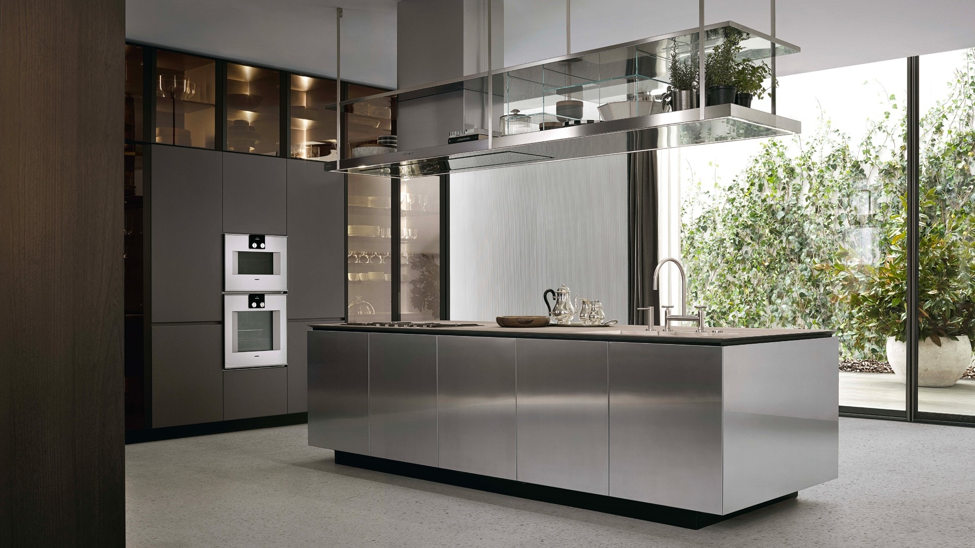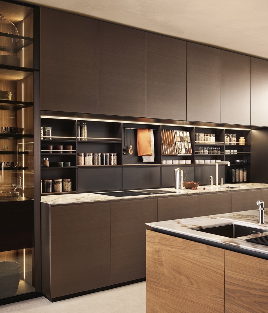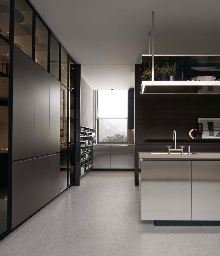 Artex Poliform CucinaArtex от Poliform — это кухня, в которой материалы играют главную роль благодаря большим поверхностям и объемам, сведенным к самому необходимому. Двери могут быть из матового ламината, тисненого лака, лакированного дуба, металлического лака, глянцевого лака, дерева, массива дерева, кориана, стали или отражающего стекла. Столешницы из дерева, ламината, кориана, стали, мрамора, кварца, камня или дектона. Столешницы для закусок из рельефного лака, кориана, камня, мрамора, дерева или ламината.