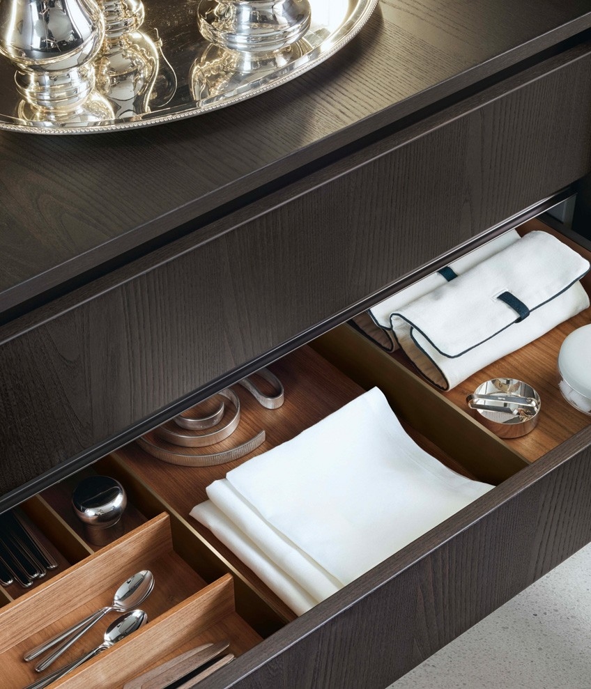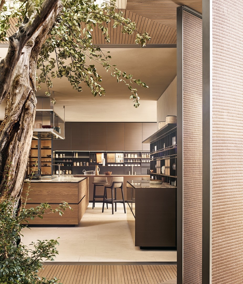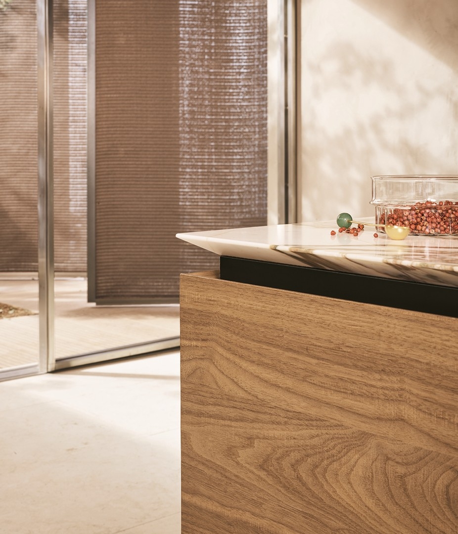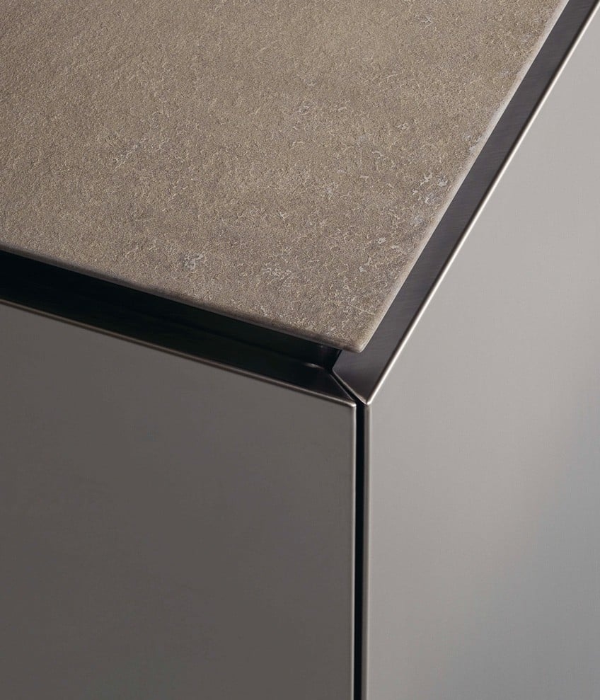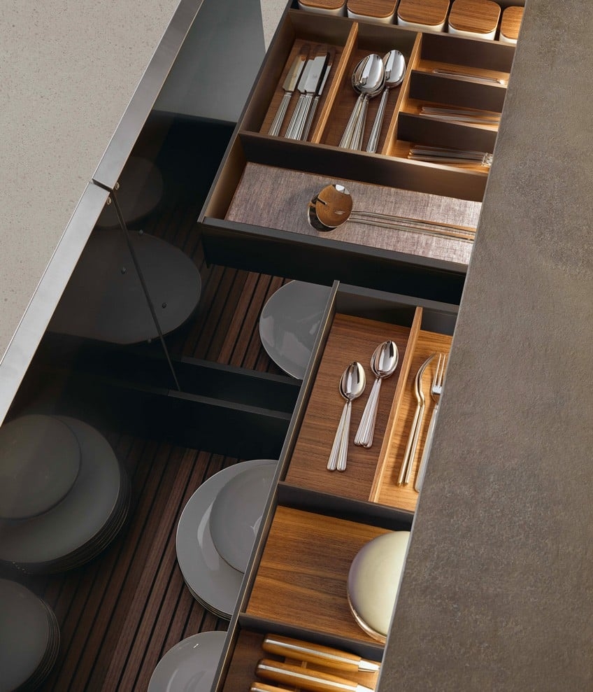 Artex Poliform CucinaArtex от Poliform — это кухня, в которой материалы играют главную роль благодаря большим поверхностям и объемам, сведенным к самому необходимому. Двери могут быть из матового ламината, тисненого лака, лакированного дуба, металлического лака, глянцевого лака, дерева, массива дерева, кориана, стали или отражающего стекла. Столешницы из дерева, ламината, кориана, стали, мрамора, кварца, камня или дектона. Столешницы для закусок из рельефного лака, кориана, камня, мрамора, дерева или ламината.