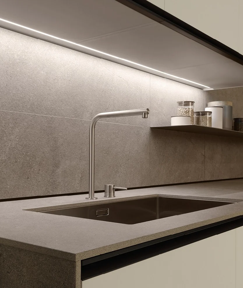 Кухня My Planet PoliformMy Planet от Poliform — это кухня, которая создает ощущение практичности и легкости благодаря таким компонентам, как сетка и столешницы различной толщины, а также использованию света на оборудованных панелях. Двери могут быть деревянными, глянцевыми акриловыми, меламиновыми, стальными, ламинатными или лакированными. Столешницы могут быть из дерева, ламината, кориана, стали, мрамора, кварцита, камня или дектона. Столешницы для закусок из лака, кориана, камня, мрамора, дерева или ламината.
