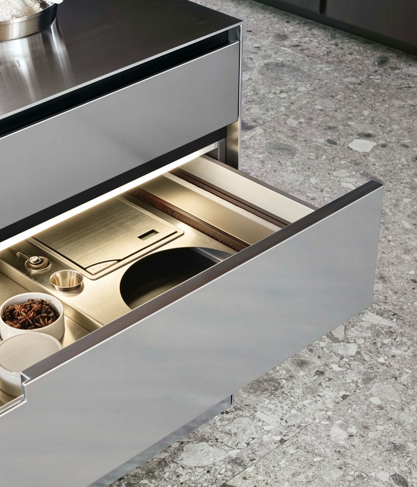 Phoenix Poliform CucinaPhoenix от Poliform — это кухня с лаконичным дизайном, вдохновленным чистейшей геометрией, для проекта, характеризующегося простотой и строгостью. Двери могут быть из Corian, стали, дерева, массива дерева, лака металлик, лака с тиснением или глянцевого лака. Столешницы из дерева, ламината, кориана, стали, мрамора, кварца, камня или дектона. Столешницы для закусок из рельефного лака, кориана, камня, мрамора, дерева или ламината.